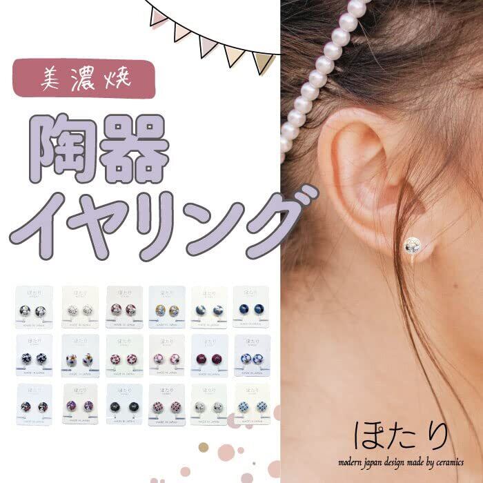 日本伝統の美濃焼 上品な金彩と、繊細な花柄が印象的な、【ぽたり】陶器イヤリングをご紹介します。 直径8mmの小さなサイズながら、個性的でおしゃれなアクセサリーとして、お出かけや日常の装いを彩ります。 耳に優しい樹脂イヤリングで、着け心地も抜群です。 お花の美しいデザインは、日本の四季折々の花々からインスパイアされました。 華やかで優雅な印象を与える、日本の花々の美しさを感じさせるアクセサリーです。 あなたの個性を引き立てるおしゃれなアイテムとして、きっとお気に入りになることでしょう。 是非、ご自身のスタイルに取り入れて、お楽しみください。