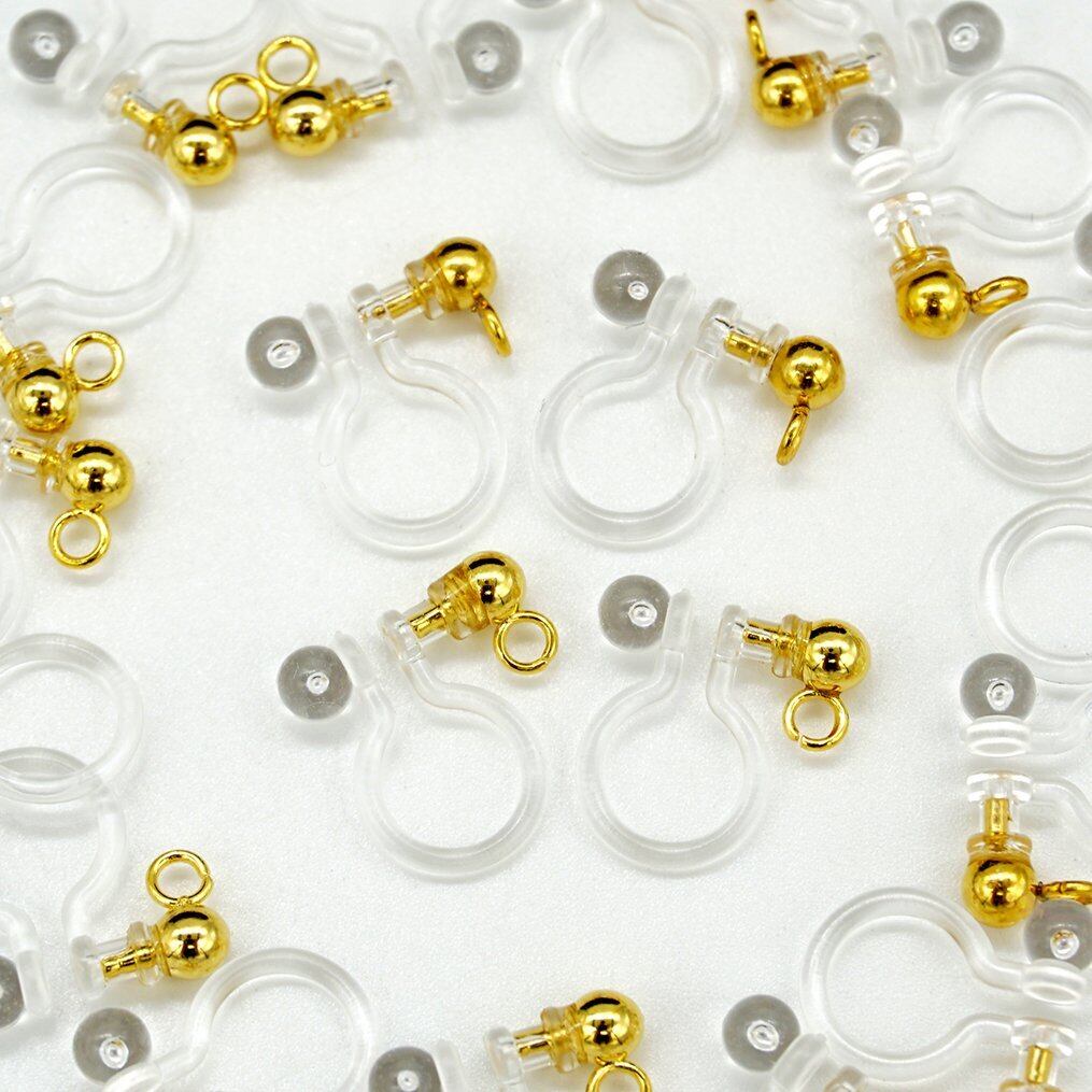 素材:樹脂、ステンレス 色:クリア(透明)、ゴールド 数量:横カン(5ペア10個)、縦カン(5ペア10個) サイズ:画像をご参考ください