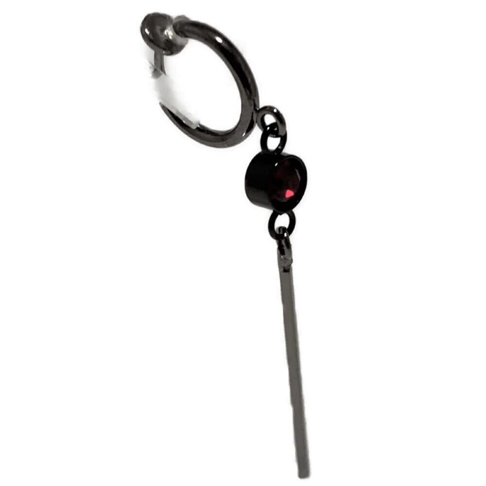 【特価セール】Akusetia バネ式 リング ピアス イヤリング 片耳 メタルブラック 黒 クリスタル ノンホールピアス シンプル メンズ レディース ショートバー (赤 レッドクリスタル)