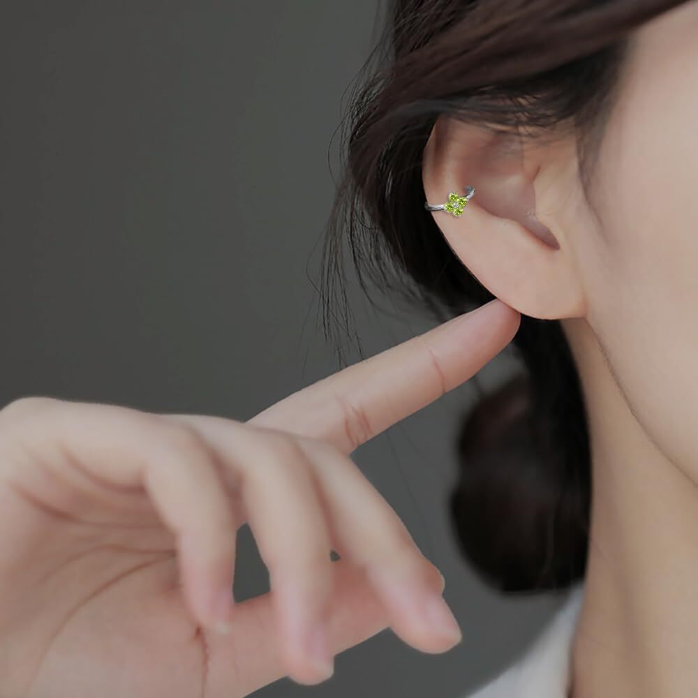 耳元の瞬間を美しく演出:爽やかなペリドットがクローバーモチーフと共に輝き、フレッシュな印象を与えるイヤーカフ。自然の息吹を感じさせる色合いが、心に安らぎをもたらします