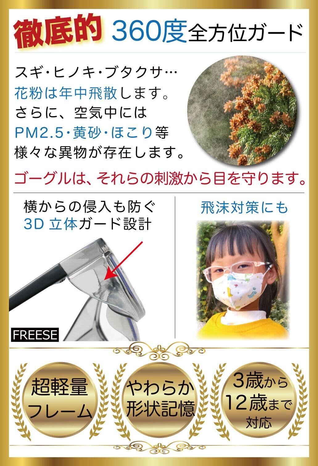 [FREESE] こども用 花粉メガネ キッズ 花粉症ゴーグル 黄砂 飛沫 対策 ブルーライトカットメガネ 子供用 UVカット 曇らない 3歳から12歳