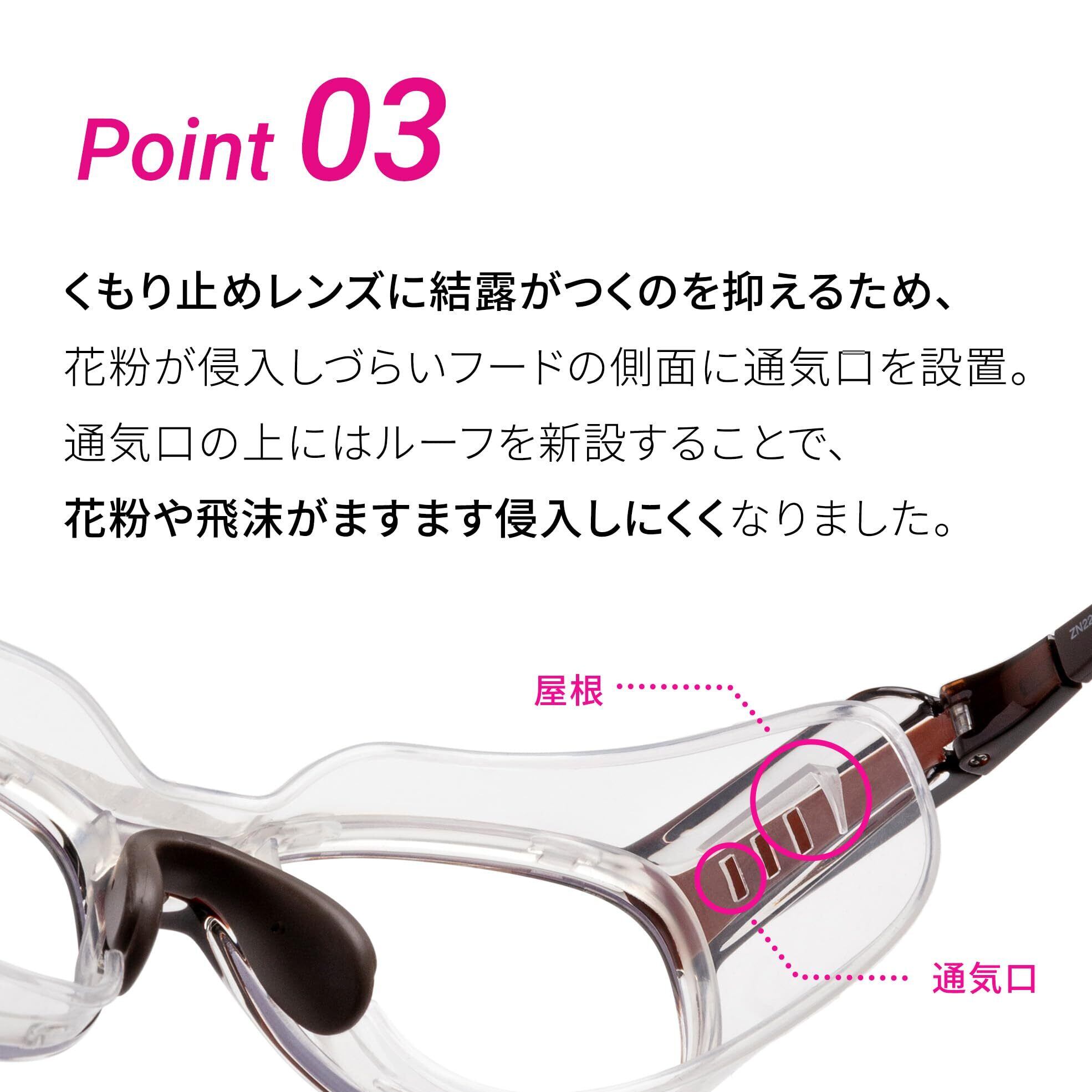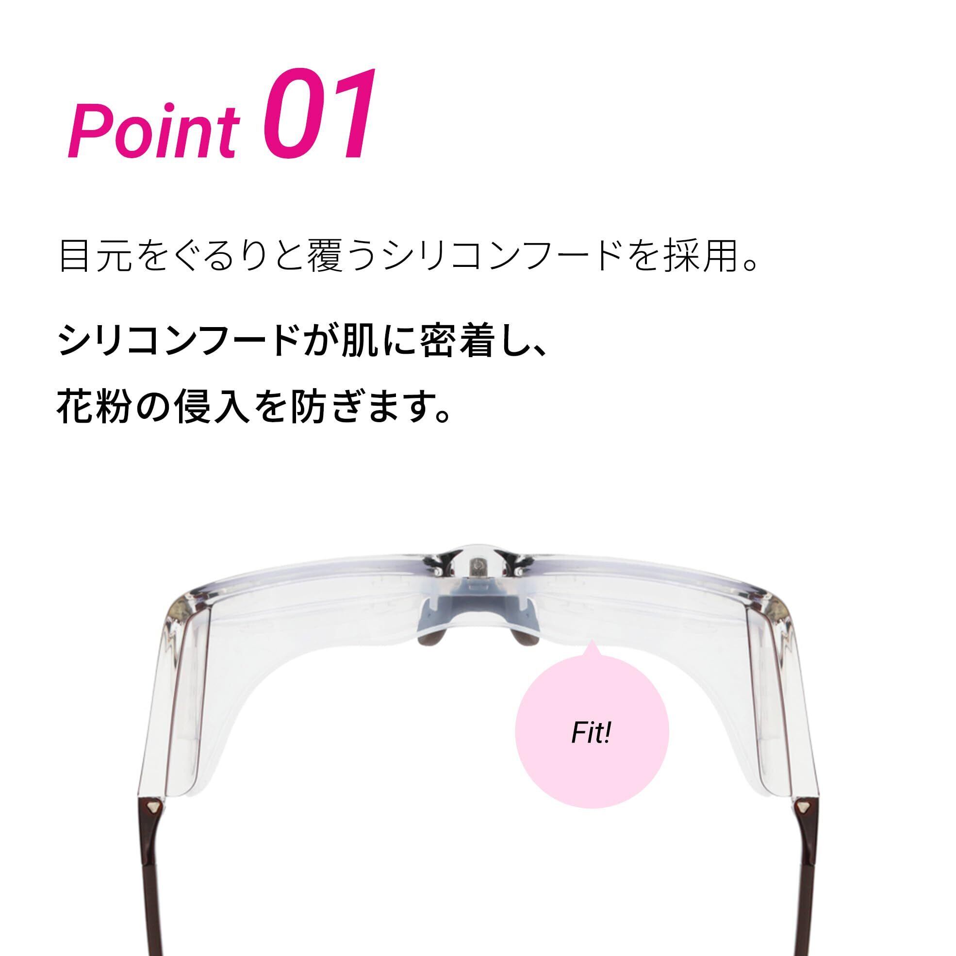 本商品の着用により、目元への花粉の侵入を最大約98%(※1)カットします。
