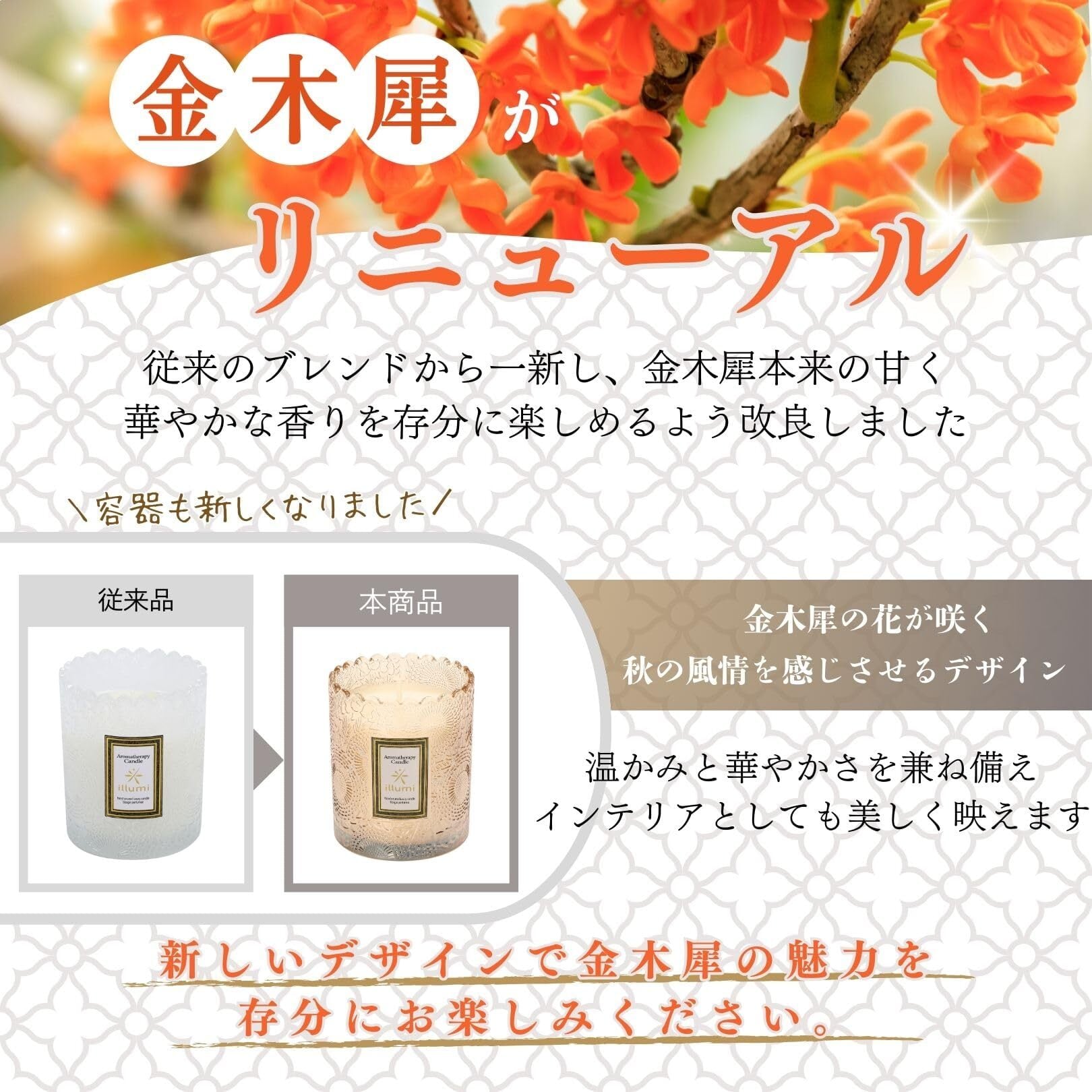 illumi アロマキャンドル ソイワックス (金木犀&オレンジブロッサム) 天然素材 パラフィンフリー 200g燃焼時間約45時間 甘い金木犀の香り ジャーキャンドル ギフト プレゼント ガラス容器