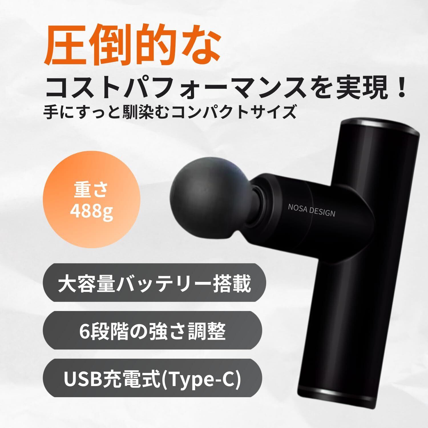 筋膜リリースガン BLACK ハンディガン 高出力パワーモーター内蔵 大容量バッテリー搭載 コードレス 軽量 自動オフ 日本国内メーカーにて一年付 限定商品 (BLACK) NOSA DESIGN 収納ケース付