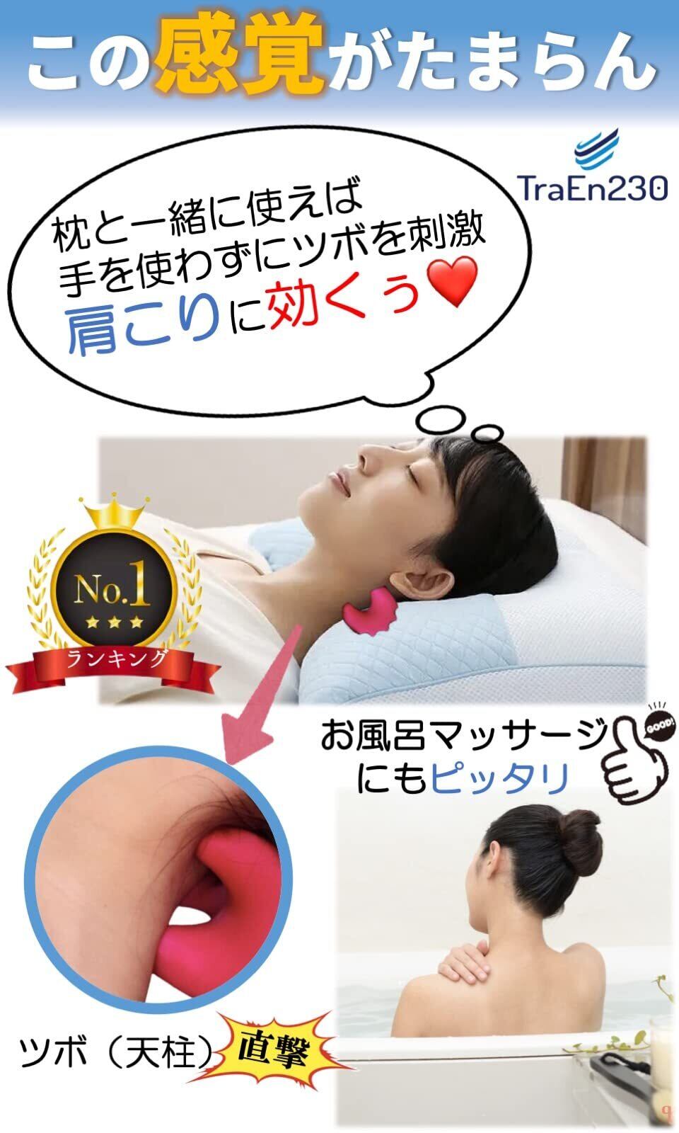 【数量限定】TraEn230 ストレートネック マッサージ 肩こり かたこり お風呂 くびこり 首こり 器具 機 肩たたき棒 頭 ツボ押し棒 肩甲骨 凝り レインボー池田直人の美しちゃんねるで紹介 (ピンク)