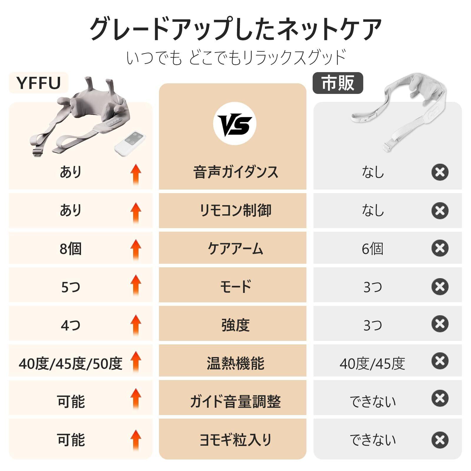 【8個広範囲をケア:2個ケアアーム・6個ケア玉】「もう少し強くのを欲しい」という声をヒントに市場より「ケアアーム」とケア玉を2個追加し合計8個ケアで、首まわりにぴったりフィットし、4D全方位ケアできるネックケア製品を開発しました。従来品は4個の肩のみのケアでしたが、このリラクゼーション器は後ろに独自設計の2個ケアアームがあるため、肩甲骨周りがぐりぐりリラックスできます。その上に、首回りの4個ケア玉以外に、肩周りにも2個ケア玉追加で、グイグイピンポイントに作動し、ちゃんと人の手のような肩をがしっと掴む自然使用感を実現できます。ケア玉の立体的な動きとアームの上下の動きが絡み合った多彩な技で、より多くのよりリアルなリラックス方法をシミュレーションできます。首、肩甲骨だけでなく、肩、背中、腰、足もトータルケアできます。