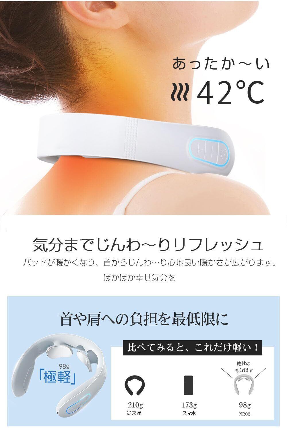 【特価セール】【理学療法士監修】 ネックケア 首 リラクゼーション器 熱ケア x EMS&TENSのW効果 首元リフレッシュ 軽量 小型 USB充電式 コードレス 音声ガイダンス付 10種モード 15段階強度調節 プレゼント ギフト 贈り物にもピッタリ 新登場 日本語説明書 (ホワイト)
