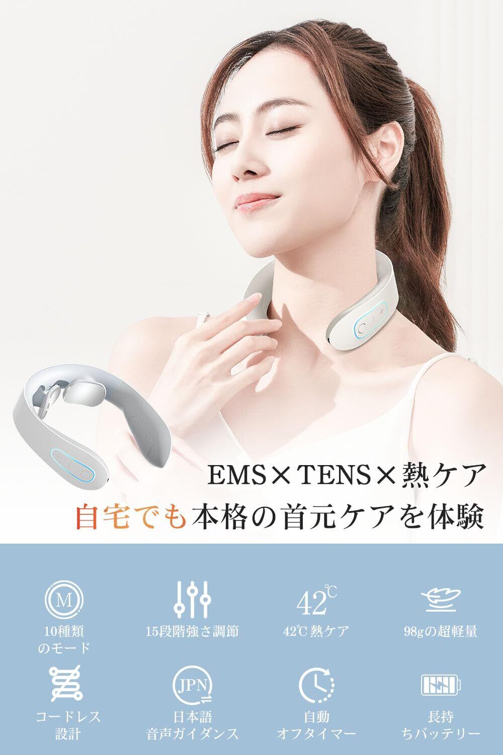 【理学療法士監修】 ネックケア 首 リラクゼーション器 熱ケア x EMS&TENSのW効果 首元リフレッシュ 軽量 小型 USB充電式 コードレス 音声ガイダンス付 10種モード 15段階強度調節 プレゼント ギフト 贈り物にもピッタリ 新登場 日本語説明書 (ホワイト)