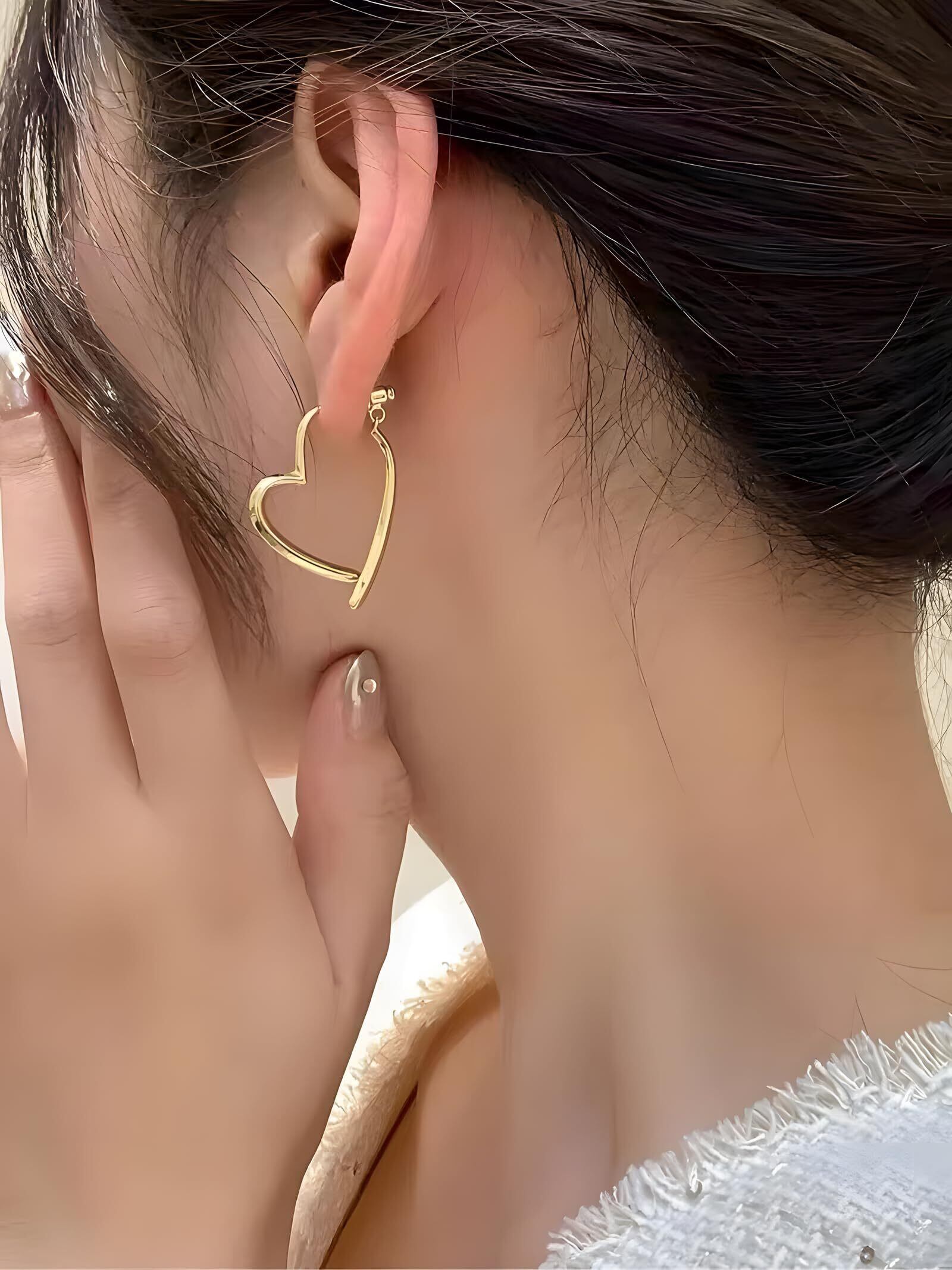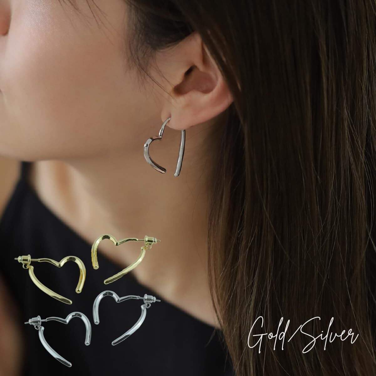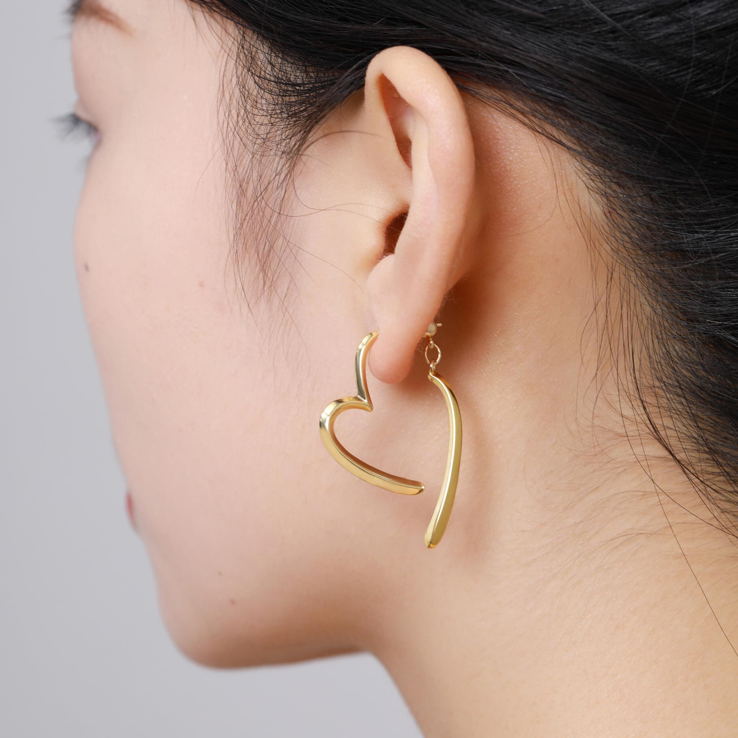 【シンプルで存在感】職場などの控えめから気分転回したい、でも派手じゃなくてキレイ目にしたい、そんな時に、この不規則ハートピアスが最適。シンプルで可愛い、派手すぎなくて存在感あふれる。
