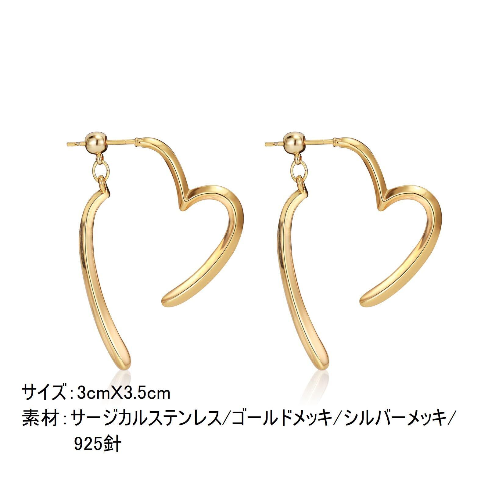 [Hothrty]ピアス レディース サージカルステンレス フープピアス ハート オープンハート 揺れる 大きめ シルバー ゴールド ピンクゴールド シンプル ペア 金属アレルギー対応 ギフトBOX付き