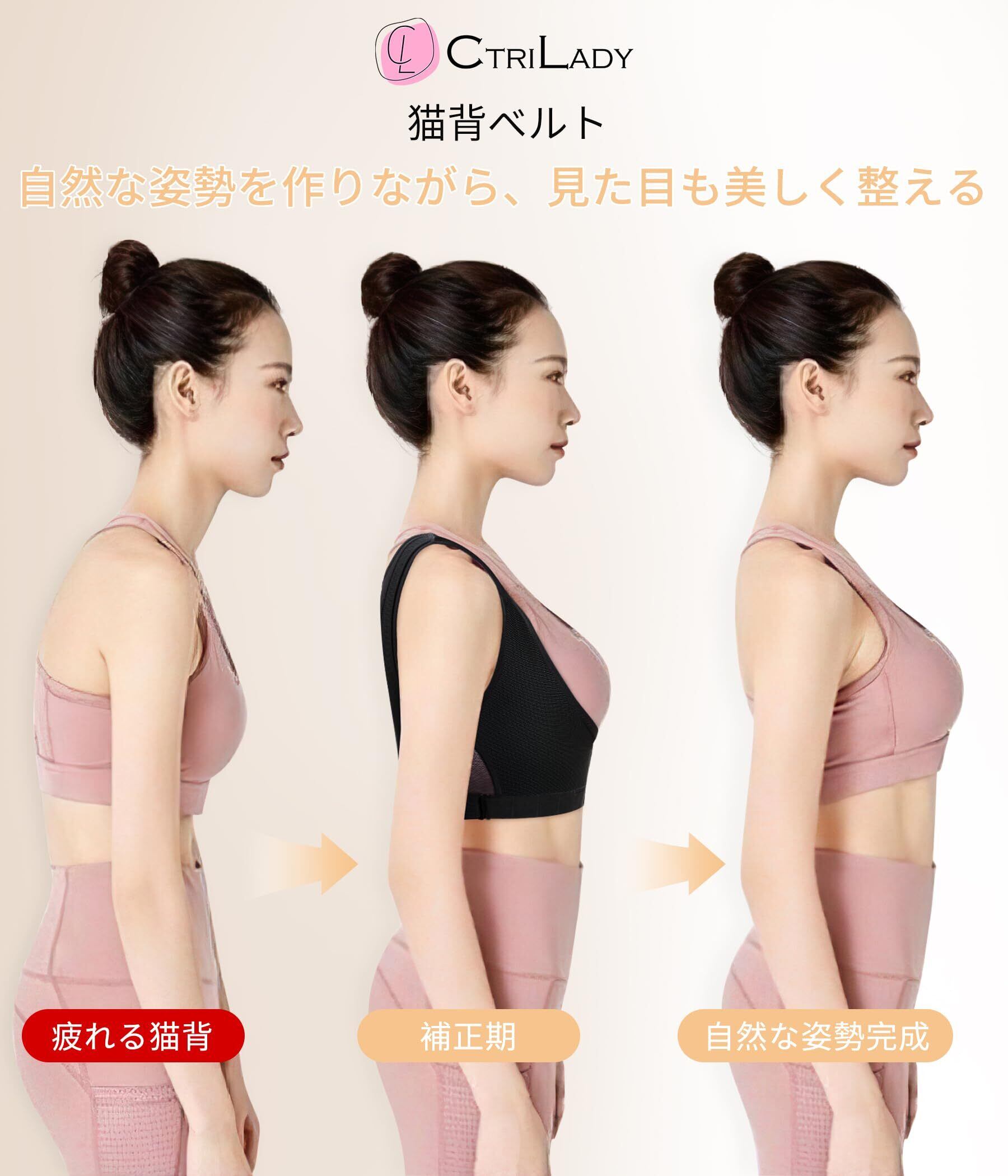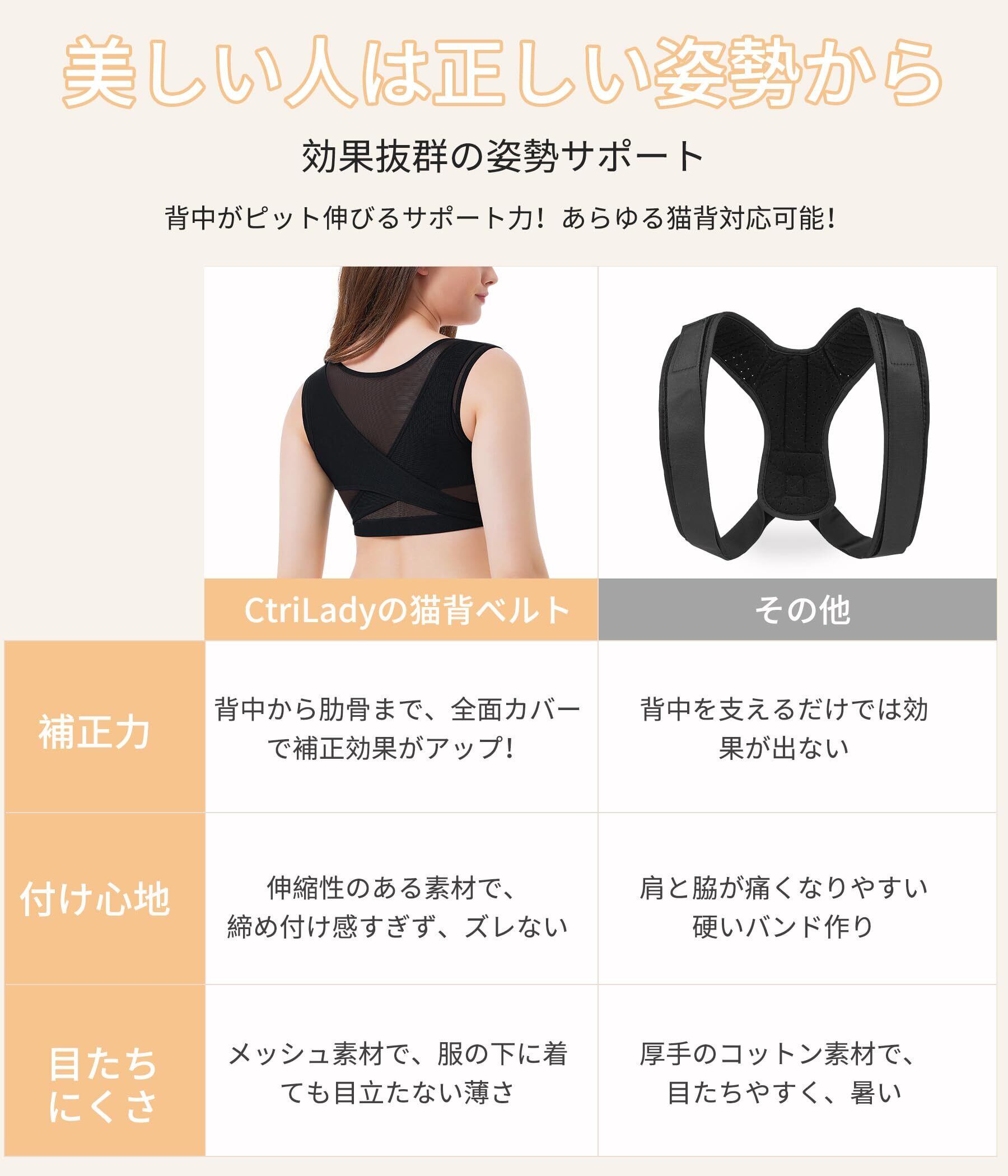 【数量限定】CtriLady 肋骨 コルセット 肩胛骨はがし 肩サポーター 姿勢サポーター 補正下着 背中 サポーター 肋骨ベルト 背中 汗対策 背中 ストレッチ 通気性 (ブラック, M)