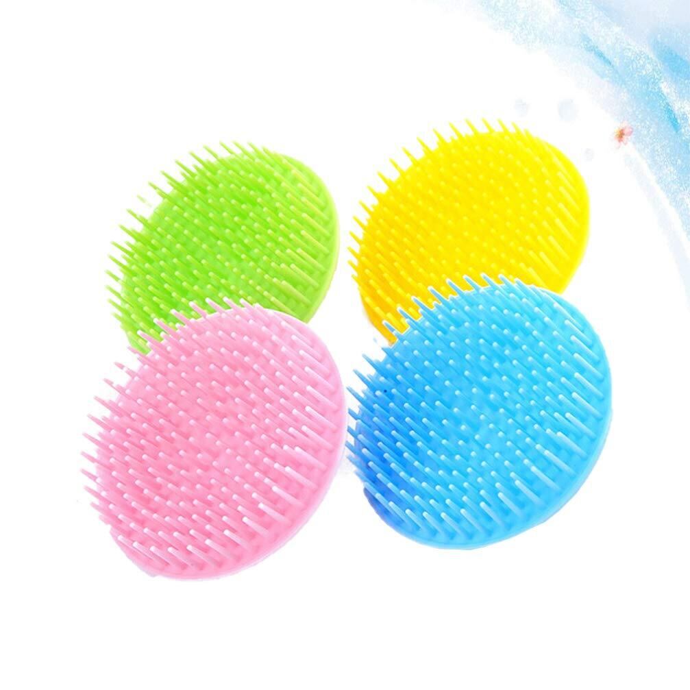 Frcolor 4本のヘアスカルプブラシシリコンシャンプースカルプマッサージブラシヘッドスクラバーブラシ、ヘア刺激用ハンドル(アソートカラー)