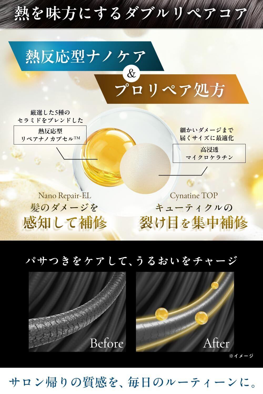 【熱を味方に、補修力を引き出す】ドライヤーやアイロンの熱で活性化する「NanoPepair-EL」が、ダメージを受けた部分に集中アプローチ。乾かすたびに髪の芯までととのい、艶と纏まりが出ます。