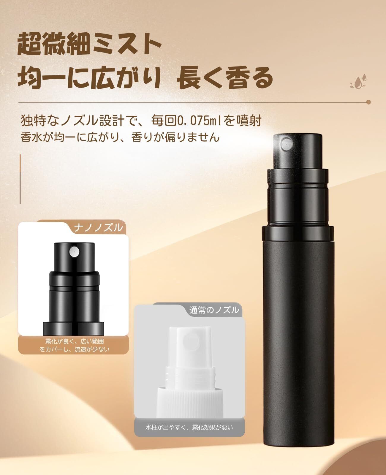【高効率で節約できる超微細ミスト】ノズルは精密に設計されており、超微細なミストが香水をムラなく広げます。1回のスプレーで最適な量を噴射し、香水を無駄にせず、高効率で節約することができます。