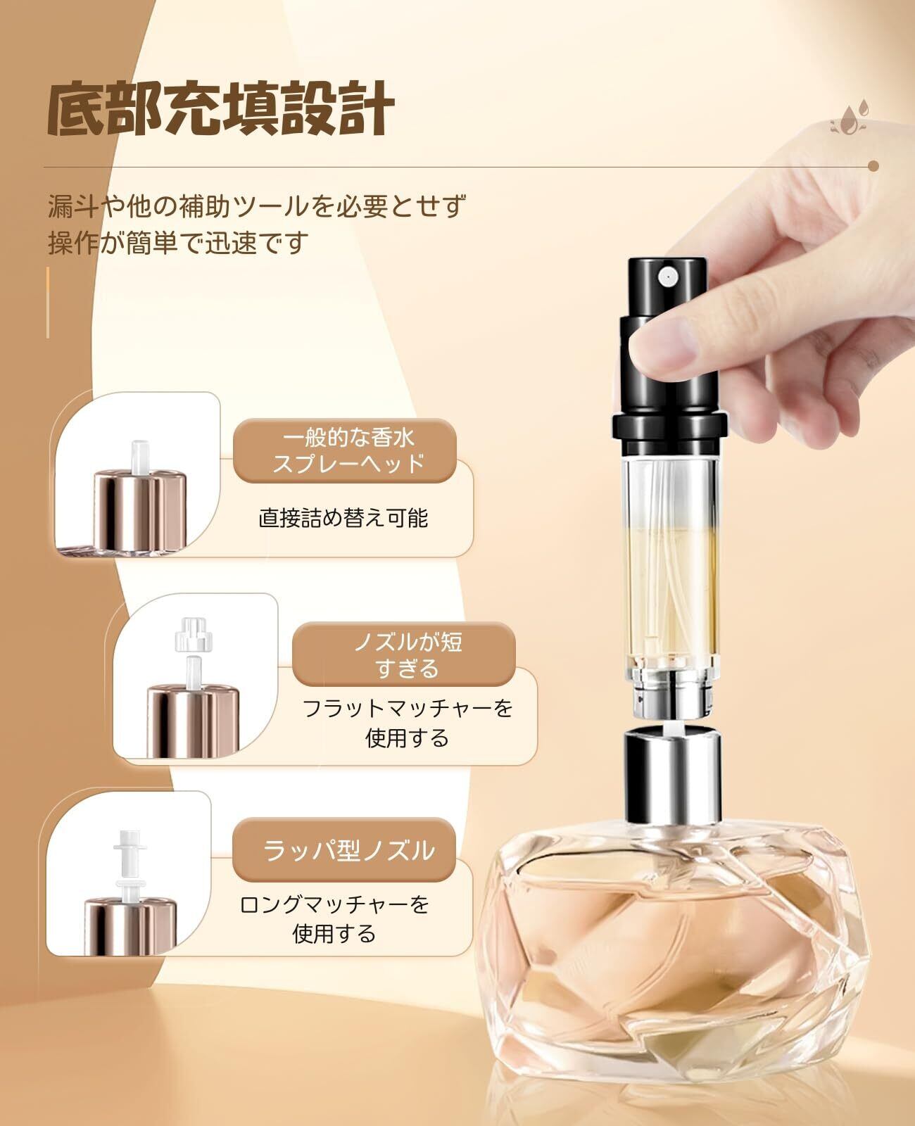 【革新的な底部充填設計】革新的な底部充填技術を採用しており、内瓶を取り出すことなく、香水を素早く補充できます。数秒で簡単に補充が完了し、スポイトや漏斗を使わずに香水ボトルから直接注入可能です。この設計により、忙しい日々でも手軽に補充ができ、時間を有効に活用できます。