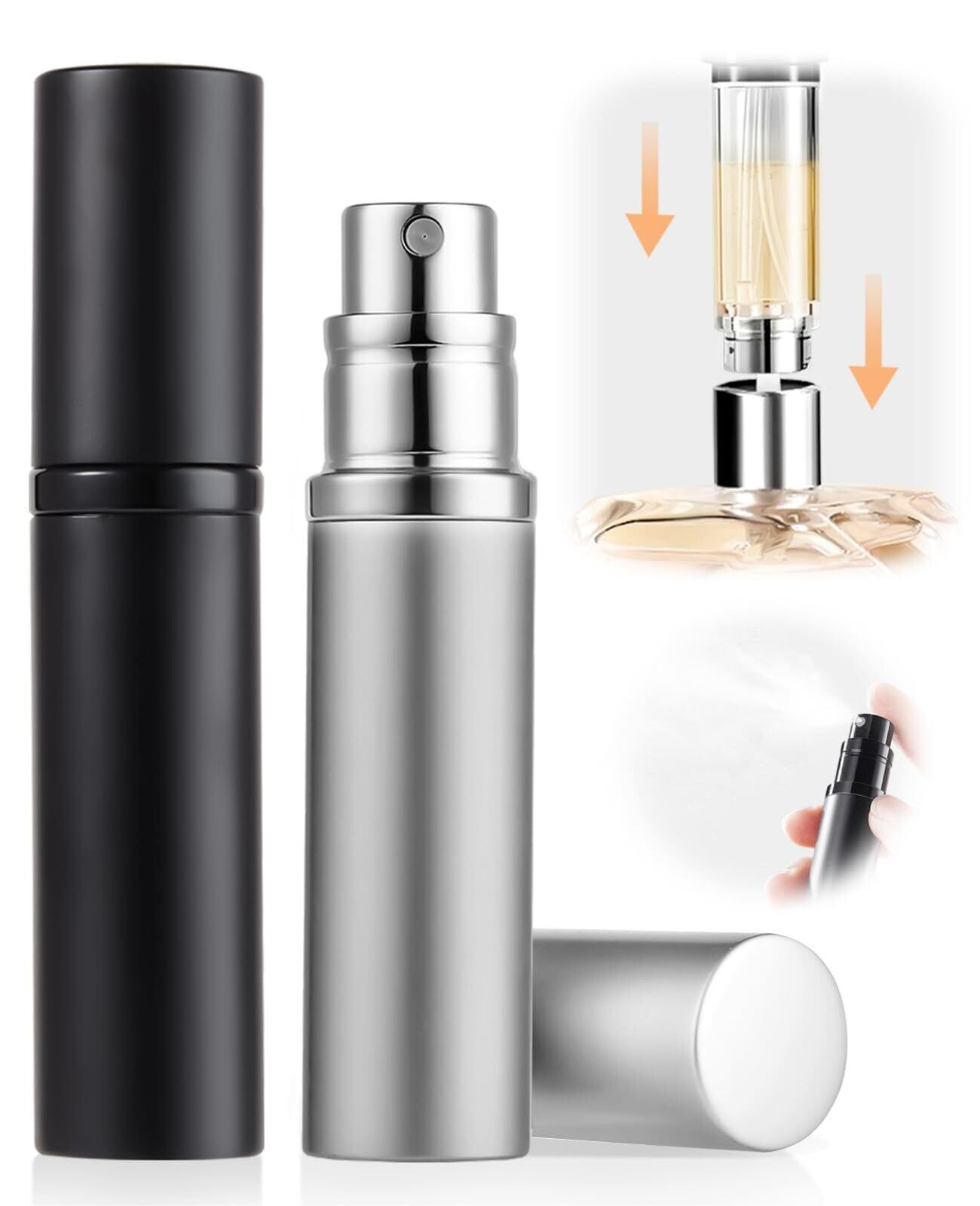 AlxMuNao アトマイザー 香水【5ml・ワンタッチ補充・携帯用】底部充填 詰め替え簡単 漏れない 持ち運び便利 コンパクトデザイン 小分けボトル 旅行 デート 仕事 男女兼用 (黒 グレー)