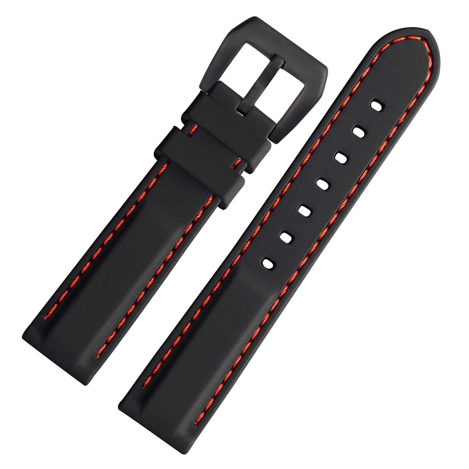 [WOCCI]時計ベルト シリコンラバー 24mm 厚め 完全防水時計替えベルト ゴム腕時計バンド ブラック ブラックバックル