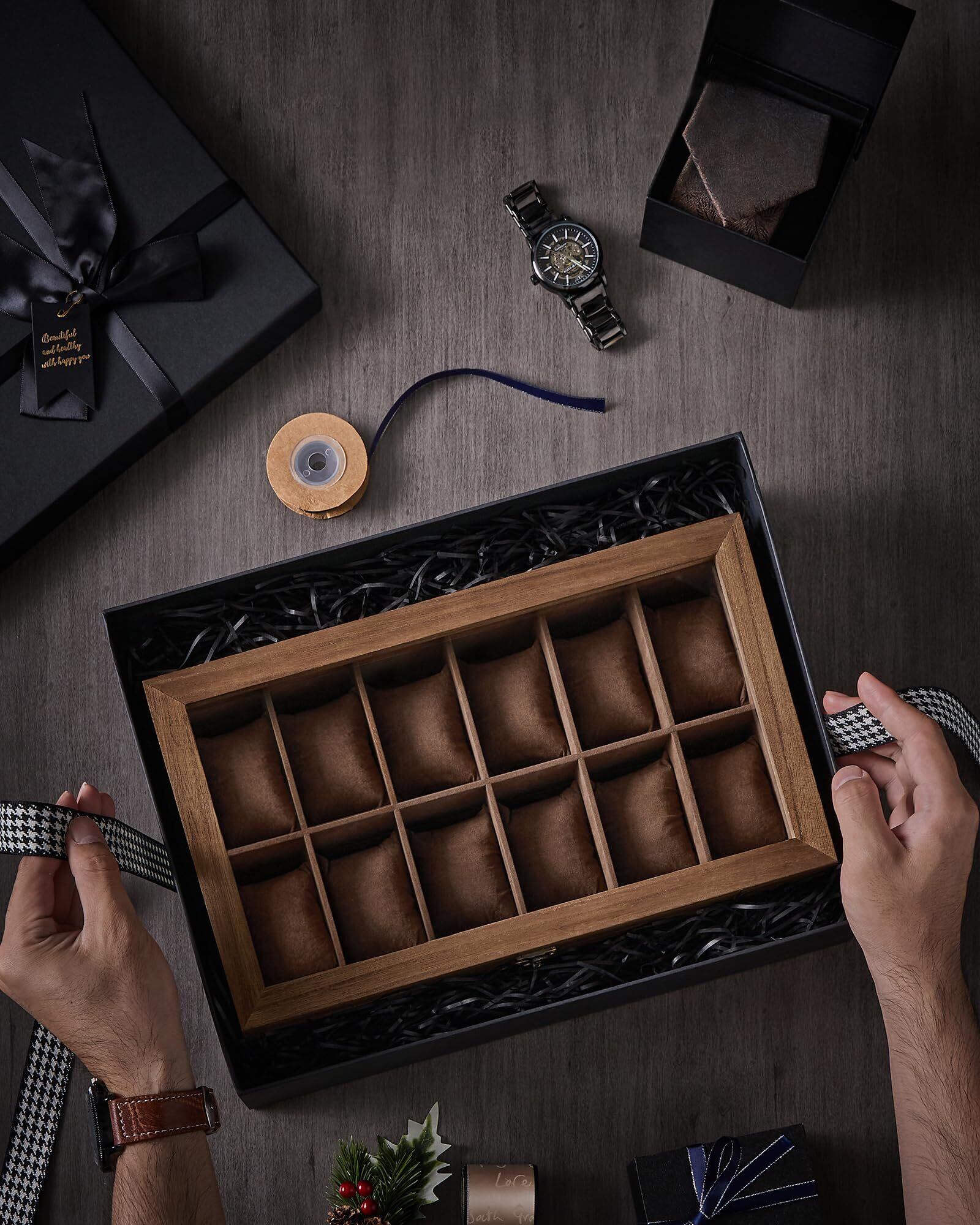【高品質木材】12本収納木製時計ケースは、上質な木材を使用しており、耐久性と美しさの特徴を備えています。表面は丁寧に磨かれ、自然な木目と光沢があり、快適で自然な感触を与えます。