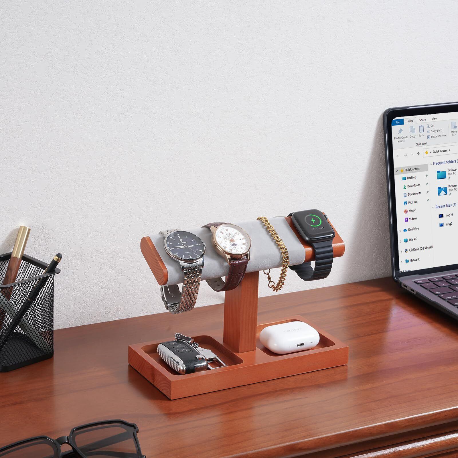 ProCase 男性用木製腕時計ディスプレイスタンドホルダー、Tバーデザインの腕時計タワー、吊り下げ式腕時計ラック、木製腕時計ツリー