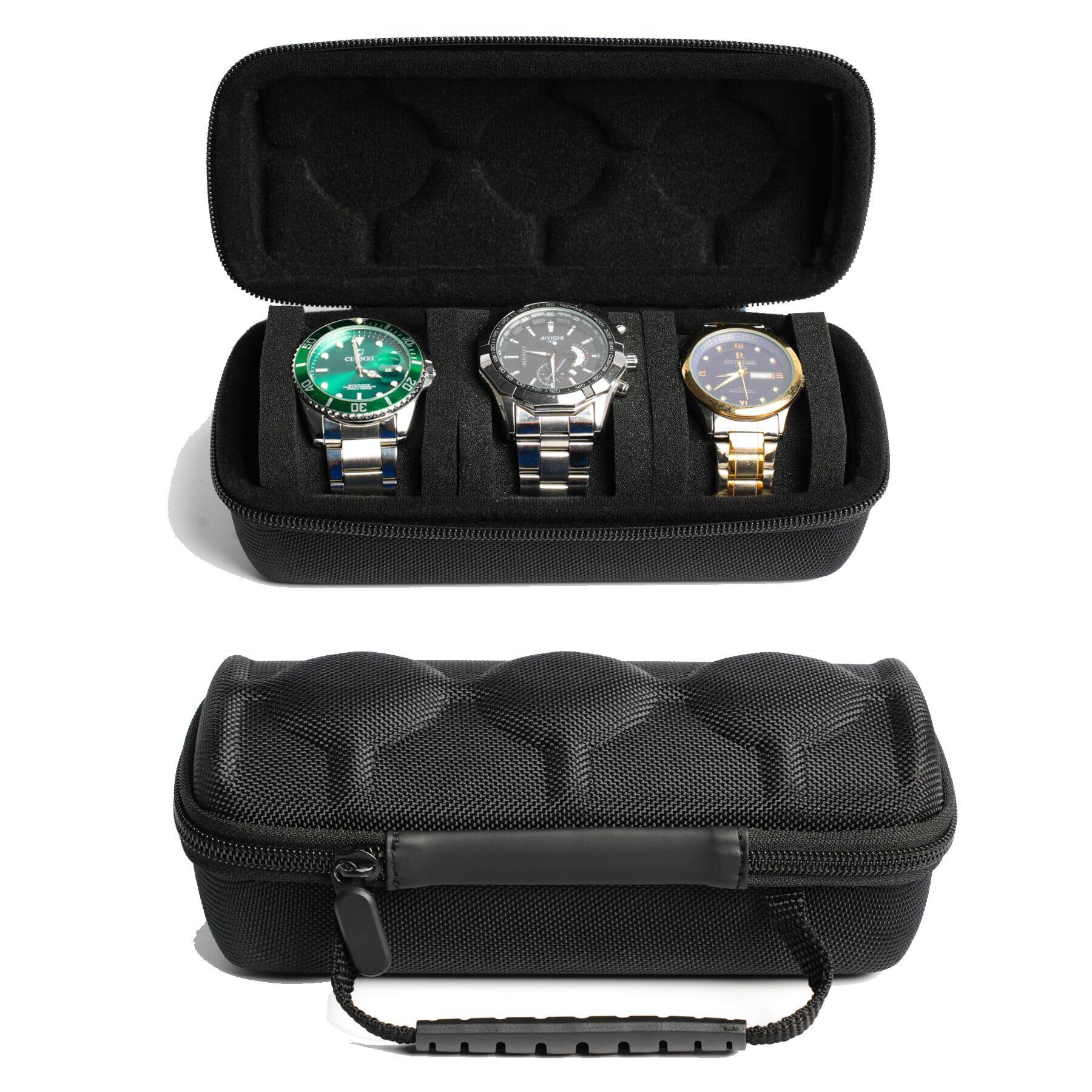 RIGICASE 3 ウォッチトラベルケースロール、ハードウォッチキャリーケースロールディスプレイストレージオーガナイザーボックス、メンズとレディース用、ソフトフォームピロー付き、60mmまでのあらゆるサイズの腕時計にぴったりフィットします。