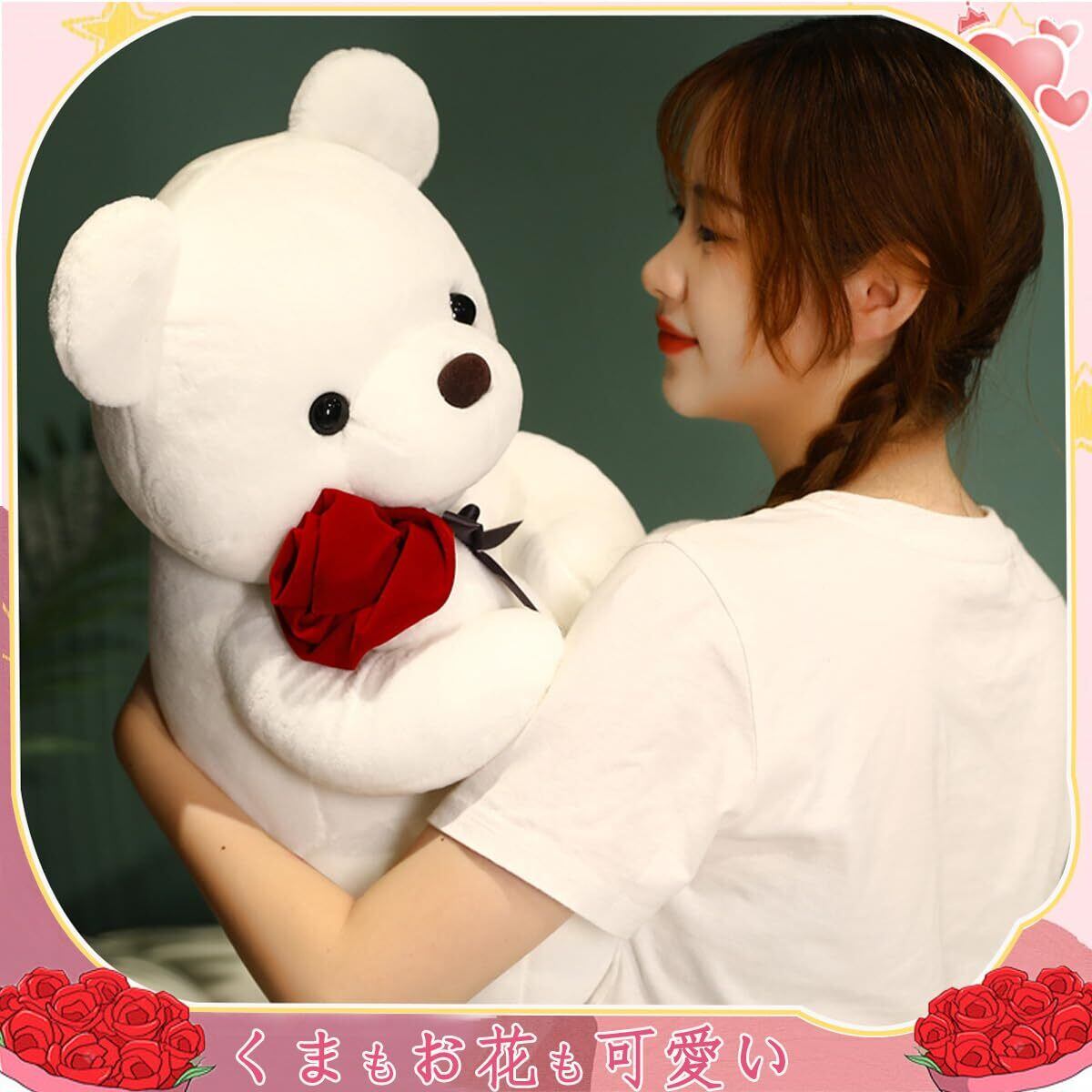 【新着商品】Homehalo テディベア ぬいぐるみ くまのぬいぐるみ 可愛い Teddy Bear 抱き枕 動物 可愛い くま ぬいぐるみ ふわふわ 特別 クマ ぬいぐるみ 気持ちいい Teddy Bear with Rose面白いギフト 母の日のプレゼント お祝い クリスマスプレゼント バレンタインデー ギフト(ホワイト,35cm)