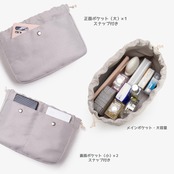 【小物整理に4ポケット】メインポケットは大きいサイズの物を整理可能、ミニポケットは携帯・リップ・イヤホンなどの小物整理に。