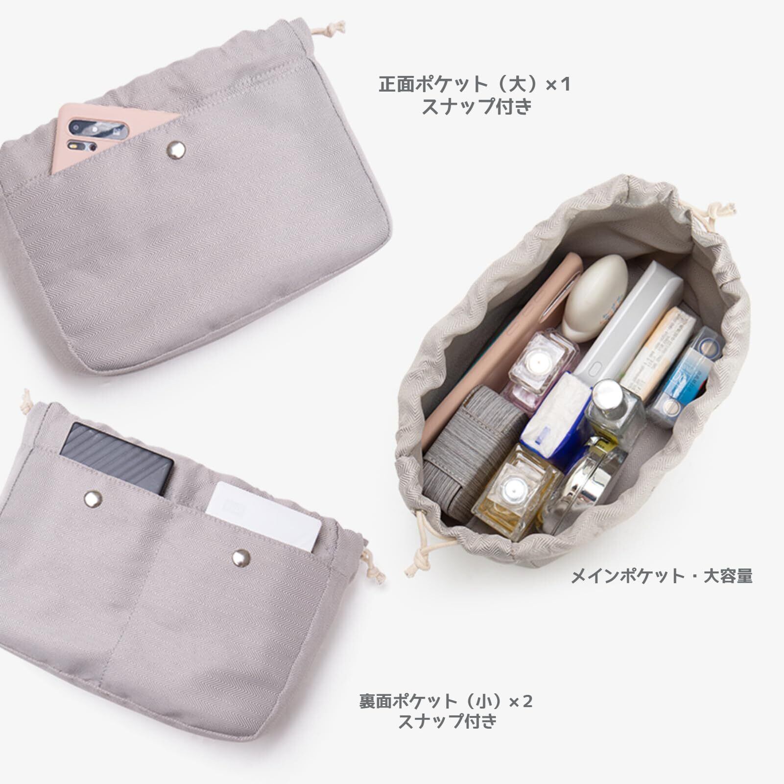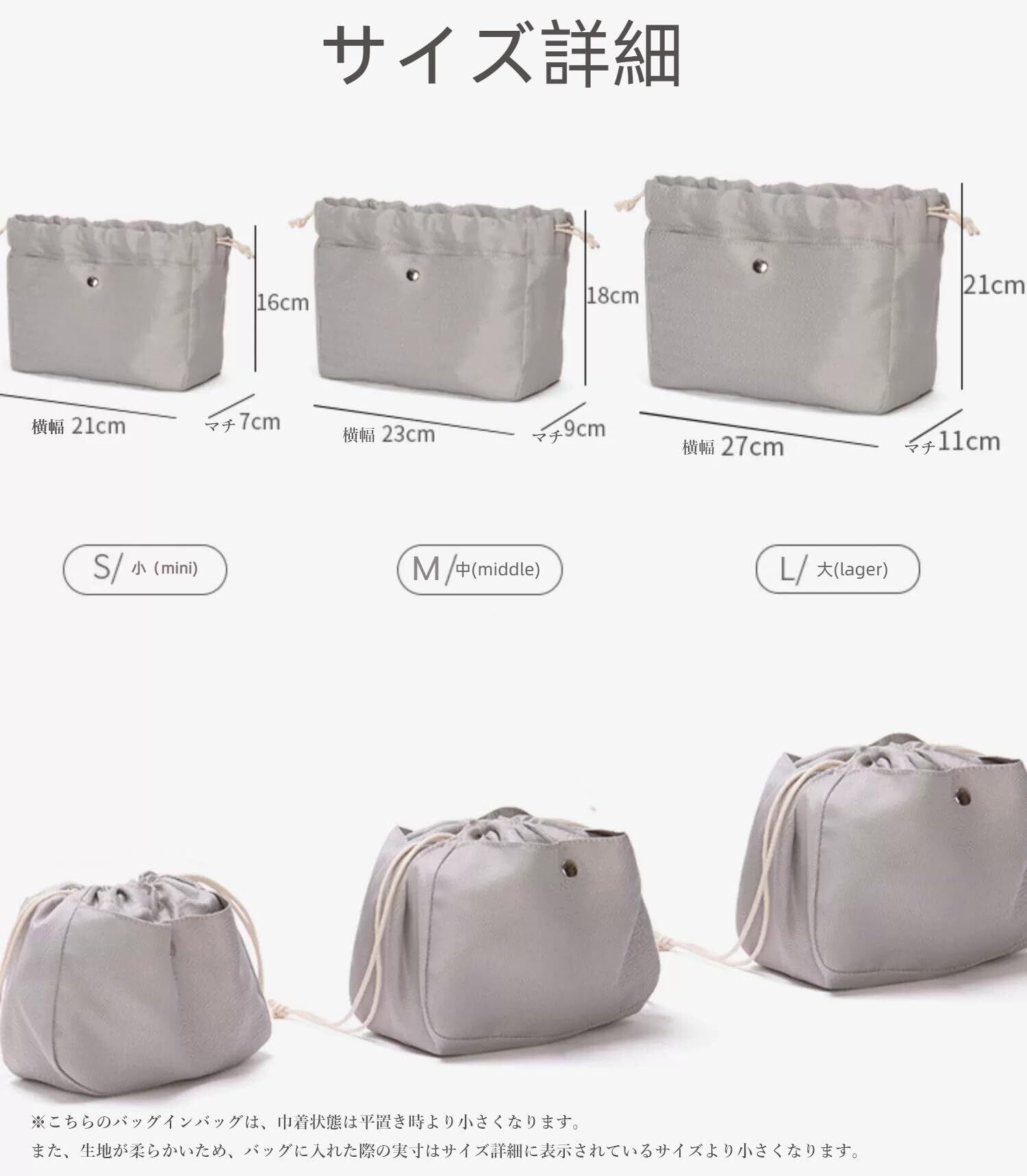 バッグインバッグ インナーバッグ ポーチ バックいんバック 収納バック 軽量 トートバッグ バケツバッグ適用 バッグインバッグ a4 横 ミニ 薄型 巾着 ポケット付き ポケット大きい大容量 小物整理 (L)