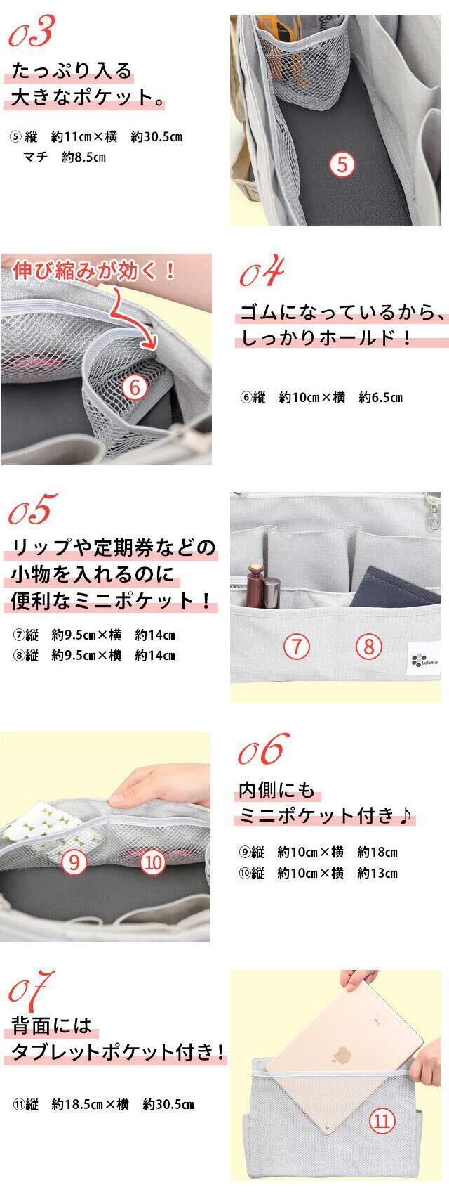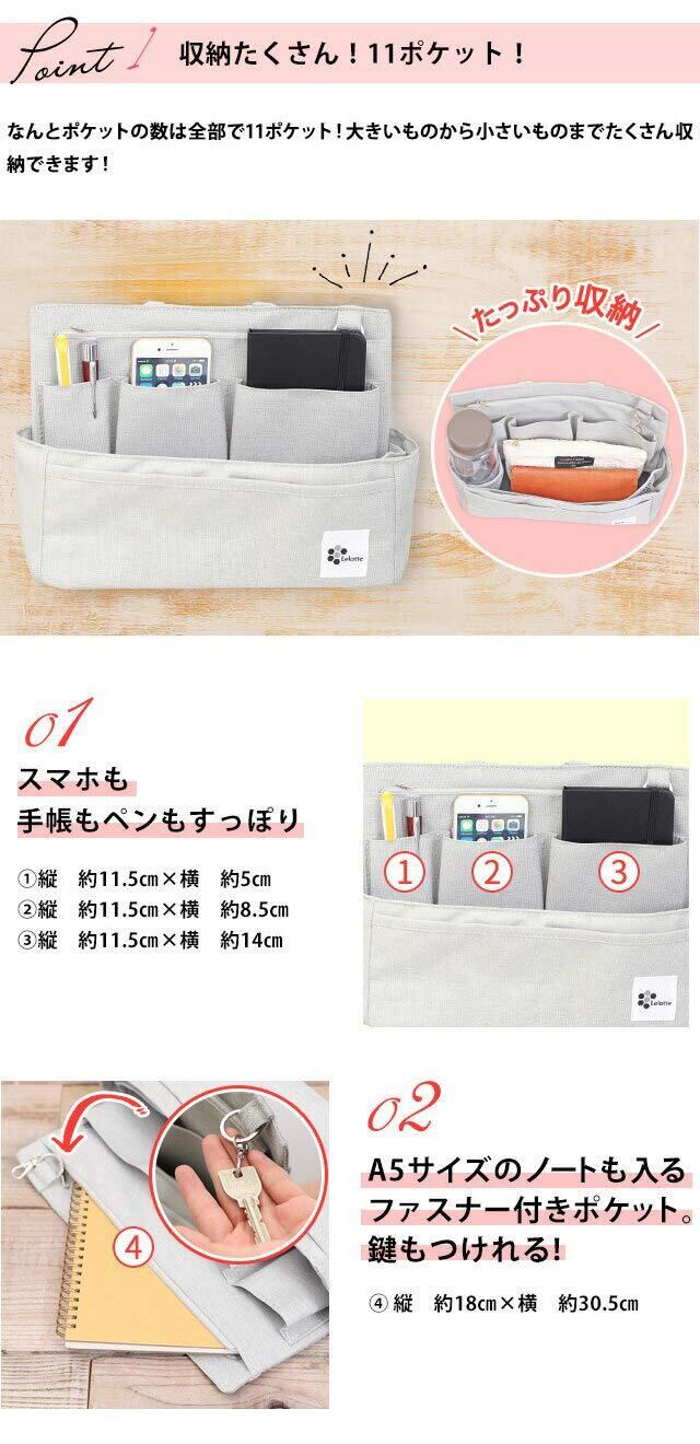 Lelotte バッグインバッグ トートバッグ用 横型 11ポケット 底板付き インナーバッグ 軽量 自立 トート バッグ 収納 メンズ レディース