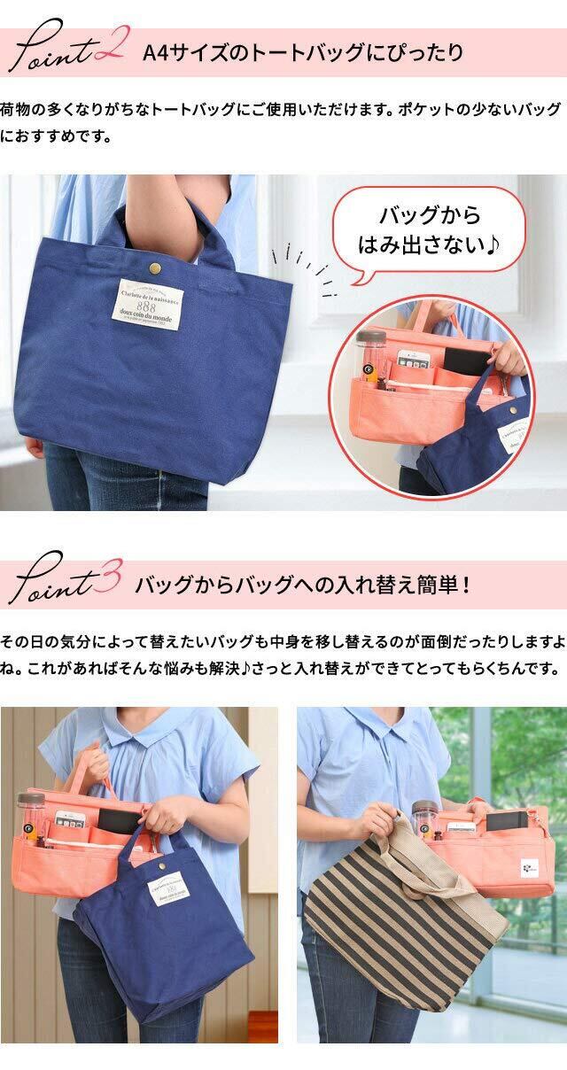 バッグの中身をきれいに整理、収納できる、バッグインバッグです