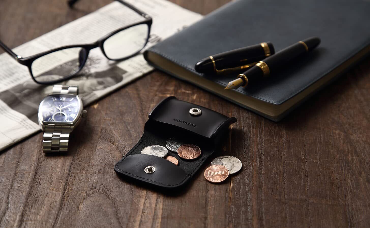 [Le sourire] 極小 小銭入れ ビジネスマンの小さな本革 コインケース コンパクト メンズ ルスリール ブラック