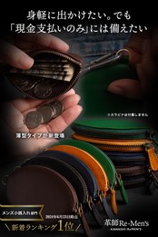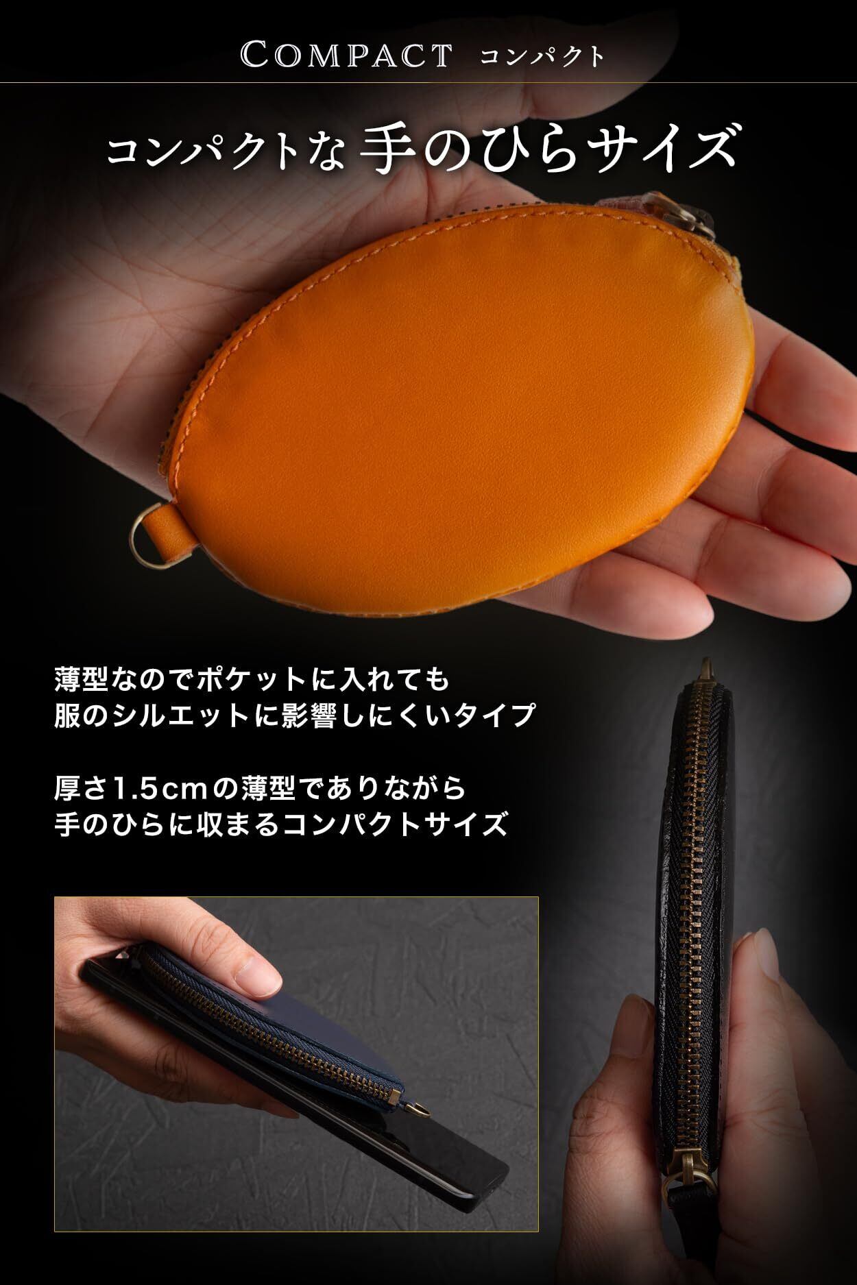 【ブランド】革師Re-MEN’S(革師リ・メンズ)/【商品名】「握りしめたくなる小銭入れ」(楕円タイプ)/【素材】高級車のシートにも使われるナッパレザー(本革・牛革)[専門機関による本革鑑定取得済み]