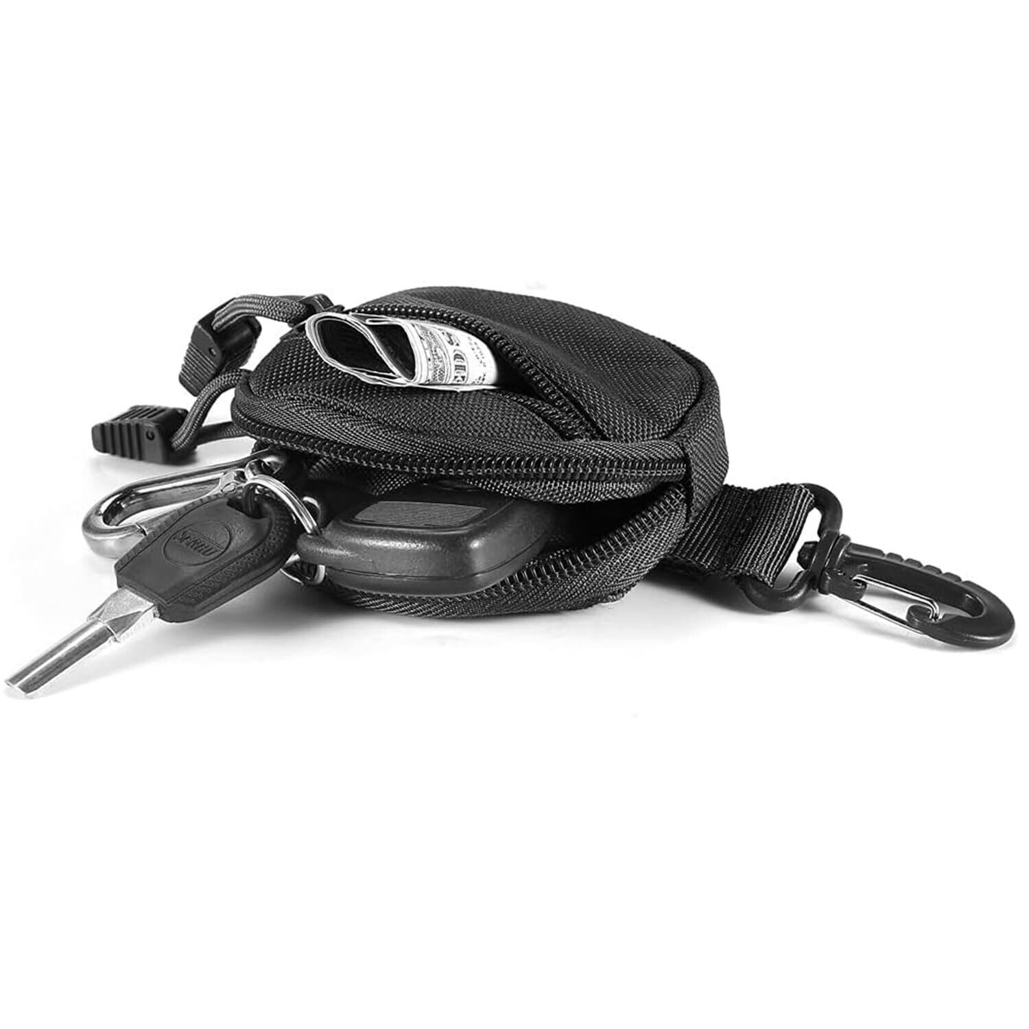 ウエストベルトバッグ カラビナ付き ミニ キー 小物入れ ウォレットホルダー 小銭入れポーチ コインポケット ミリタリーポーチ ベルトポーチ アウトドア 小さめ ジッパータブ マルチポーチ 便利 収納 小物 丸型 ブラック