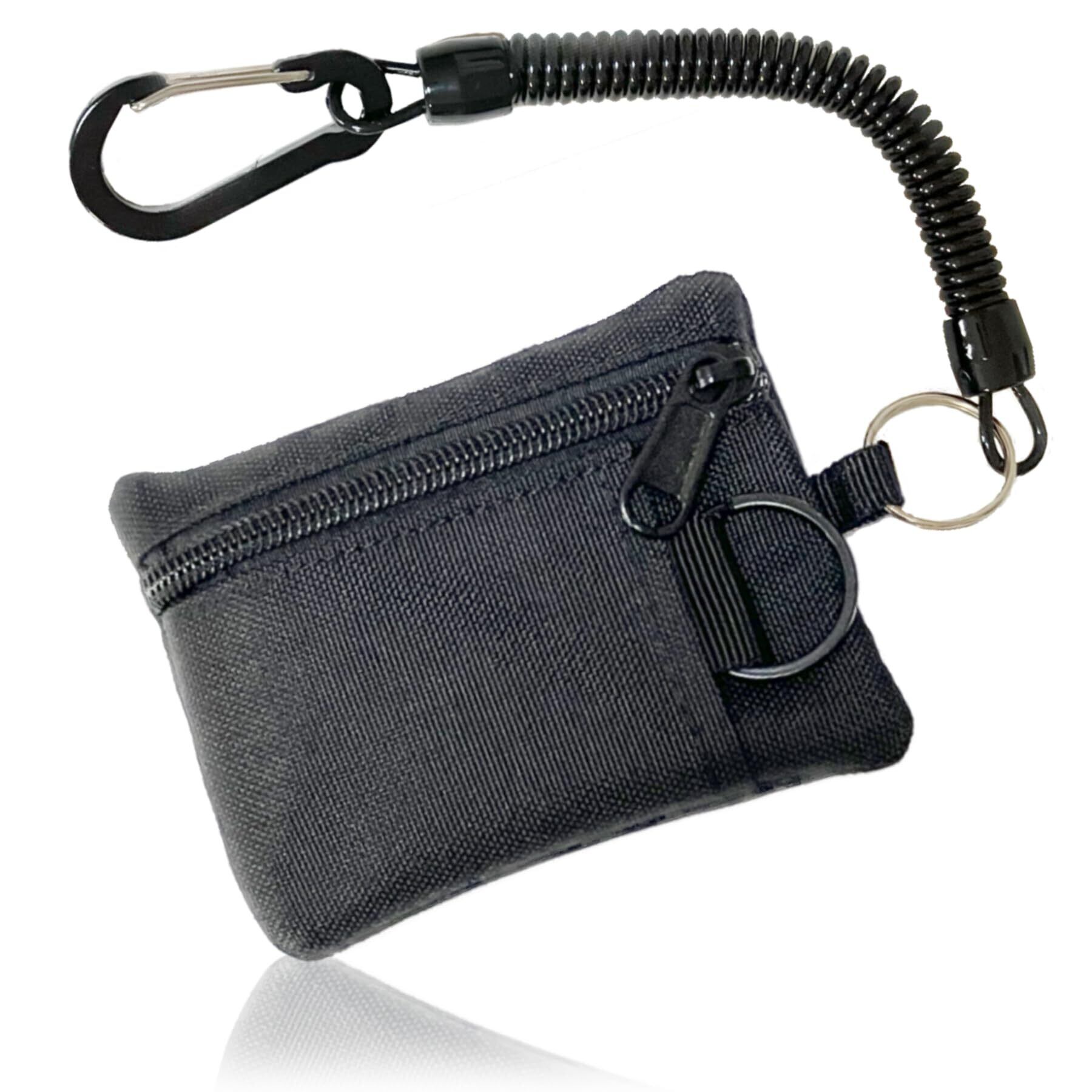 F plus G 定期入れ 小銭入れ コインケース カード ケース キーケース カラビナ付き コード付き パスケース ミニ財布 財布 吊り下げ ミニマリスト パスケース メンズ レディース 伸びる キーリング コード カラビナ コンパクト カード入れ 小銭 (Black)