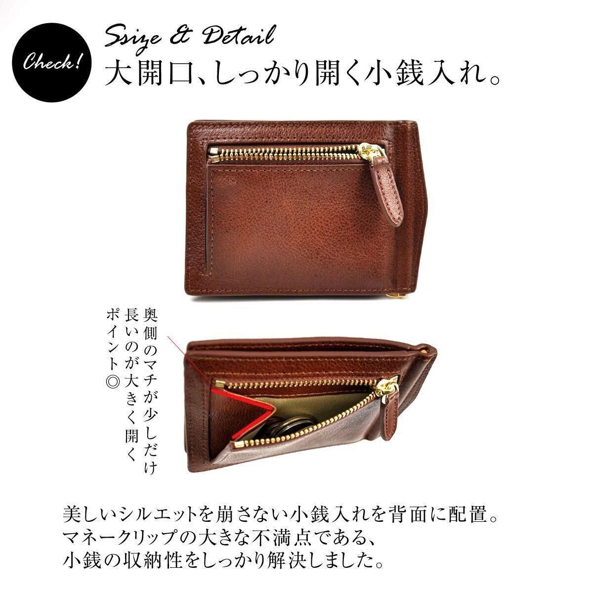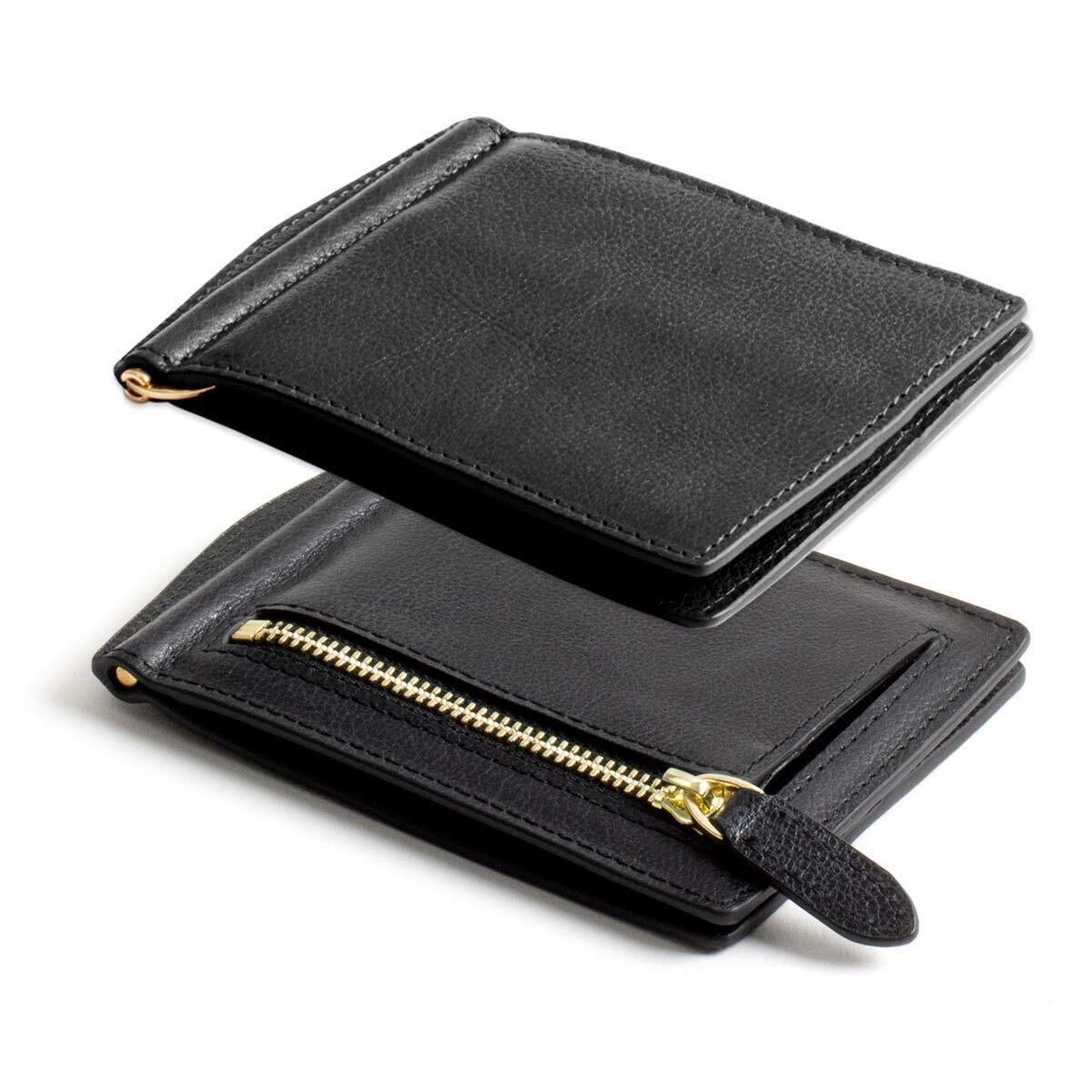 [Dom Teporna] マネークリップ メンズ 小銭入れ付き 本革 イタリアンレザー 薄型 二つ折り財布 札入れ 札バサミ カードケース ブラック