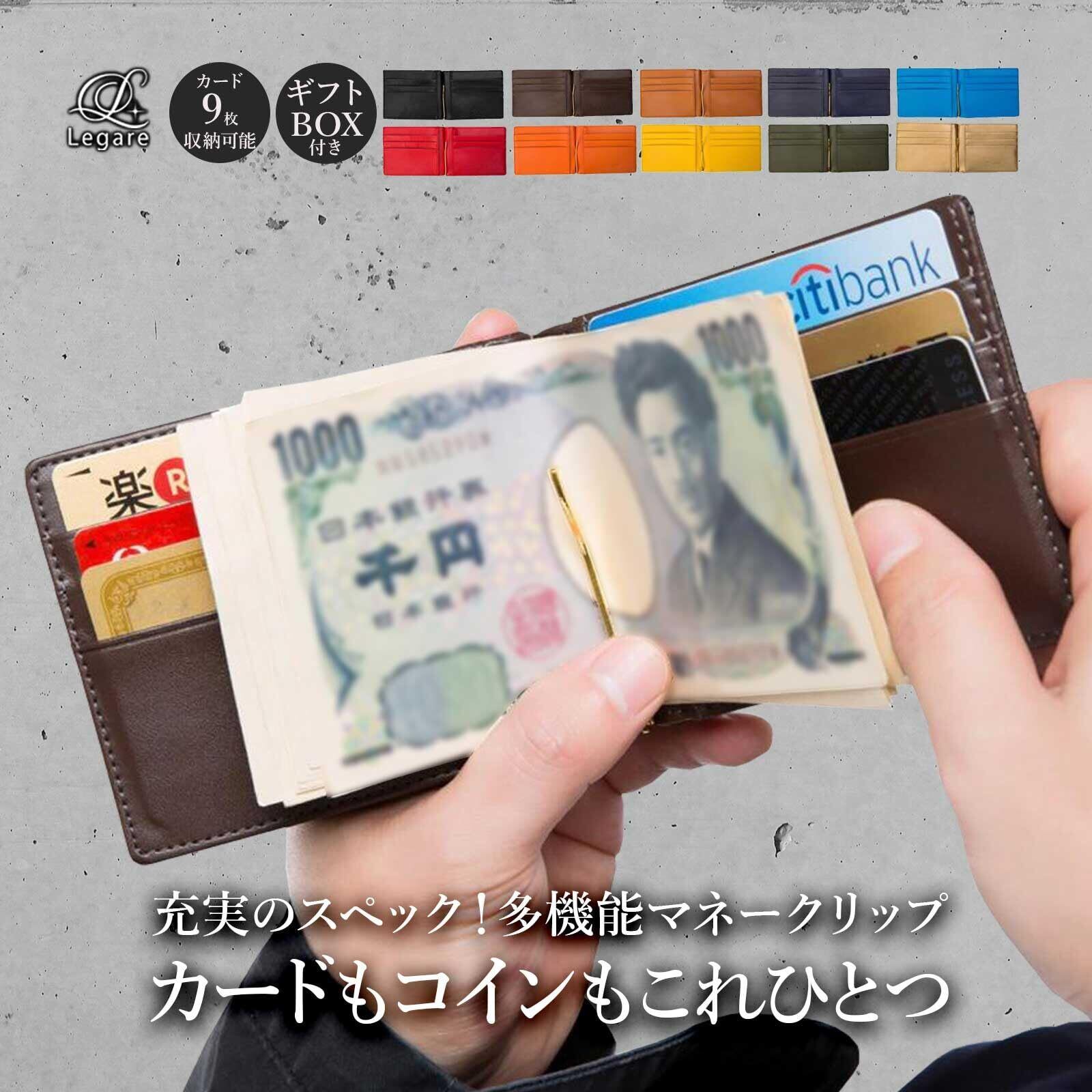 Legare(レガーレ) 小銭入れ付き 本革 マネークリップ 札はさみ 10色(オリジナル化粧箱入り) (レッド)