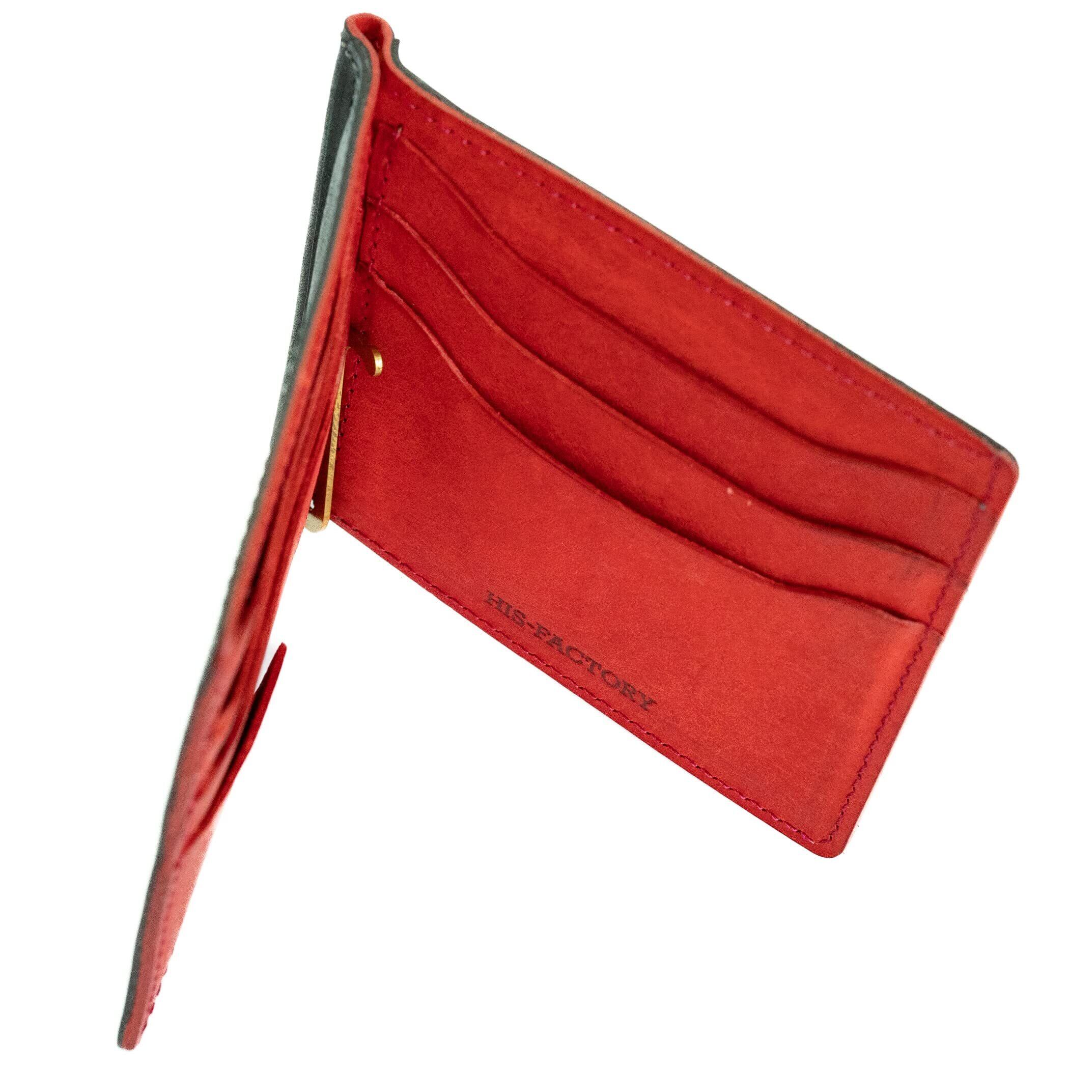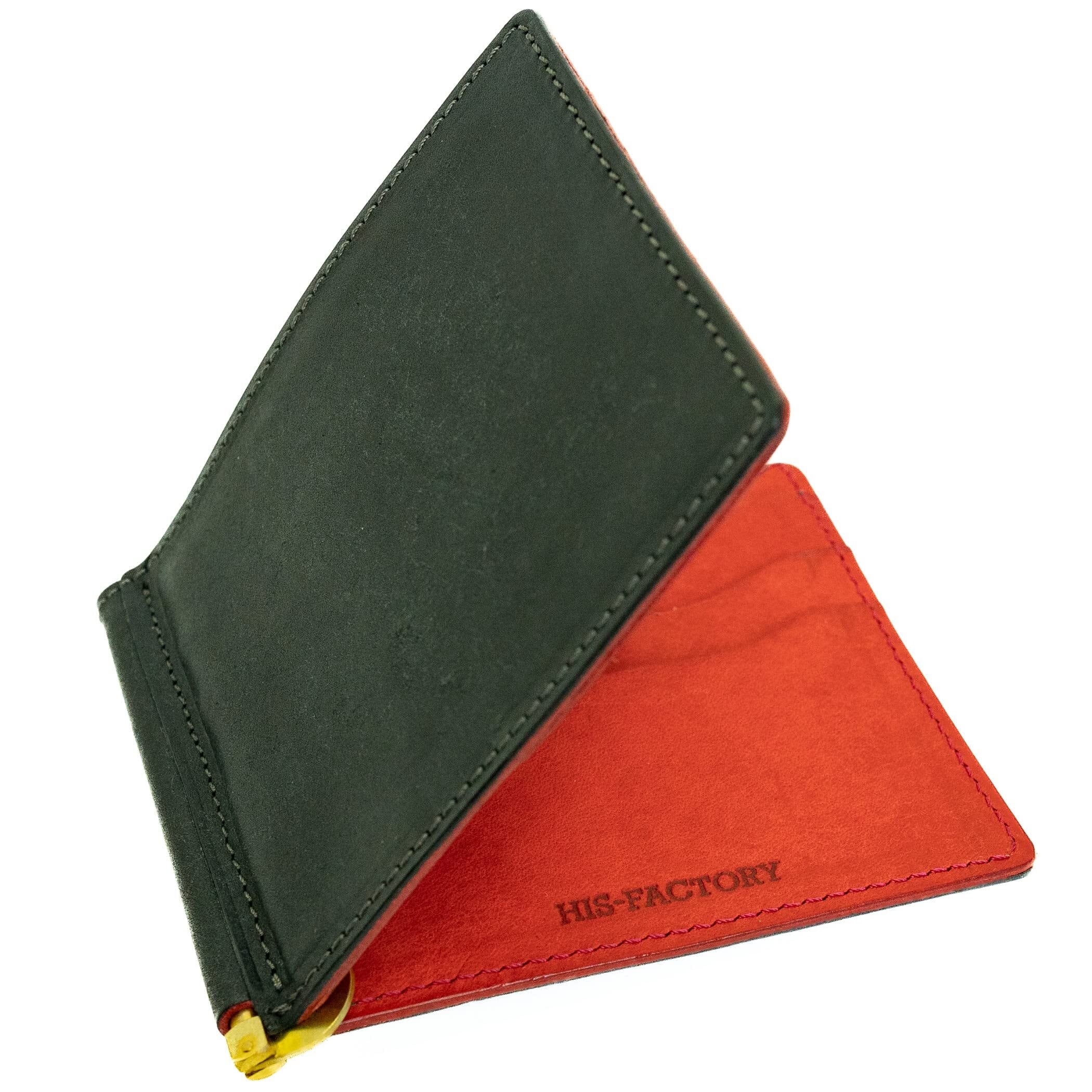 [ヒズファクトリー] マネークリップ プエブロ 本革 メンズ レディース 日本製 職人手作り (06.ネロ×パパベロ)