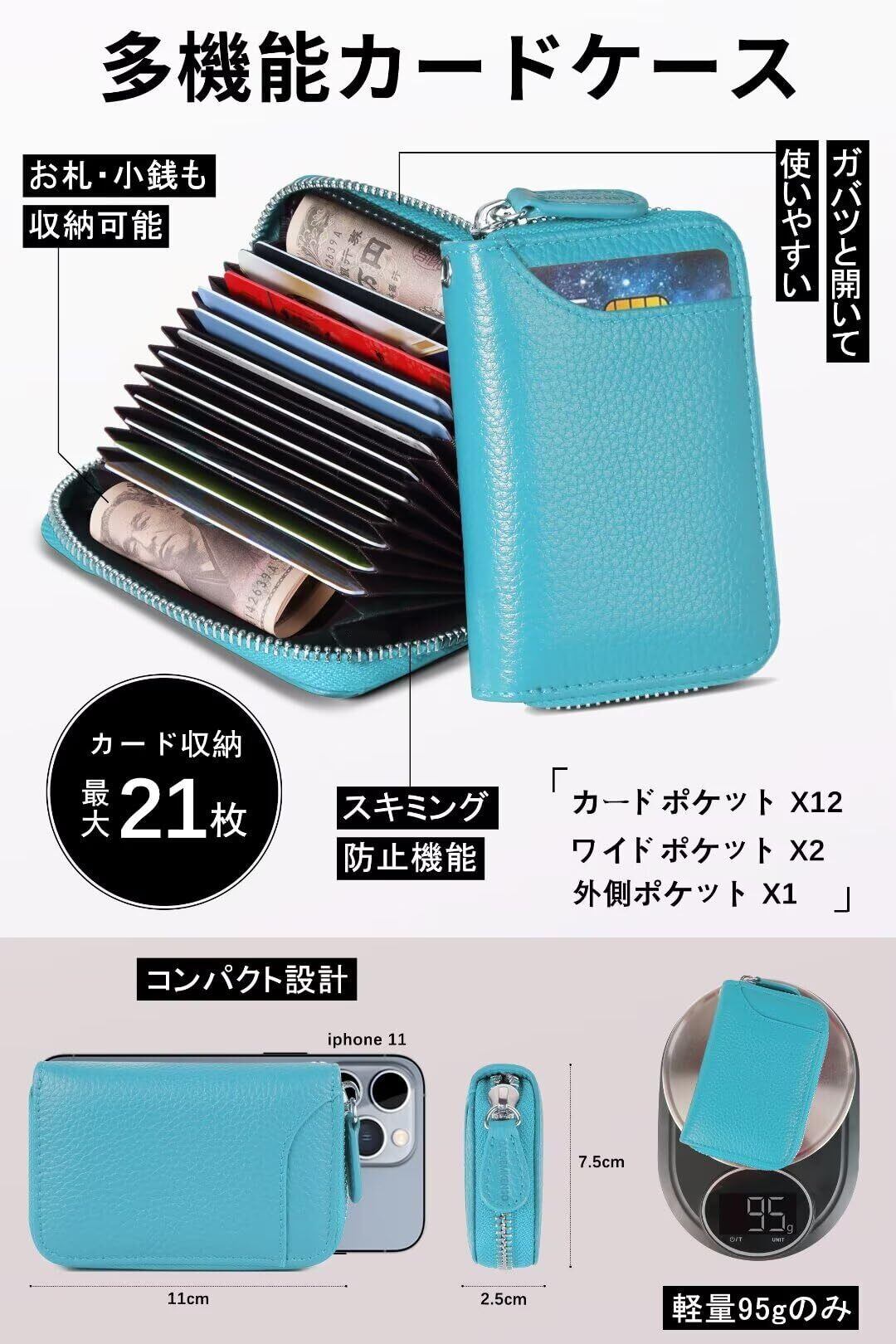 【新着商品】[GADIEMKENSD] カードケース カード入れ 本革 大容量 じゃばら スキミング防止 メンズ レディース スカイブルー