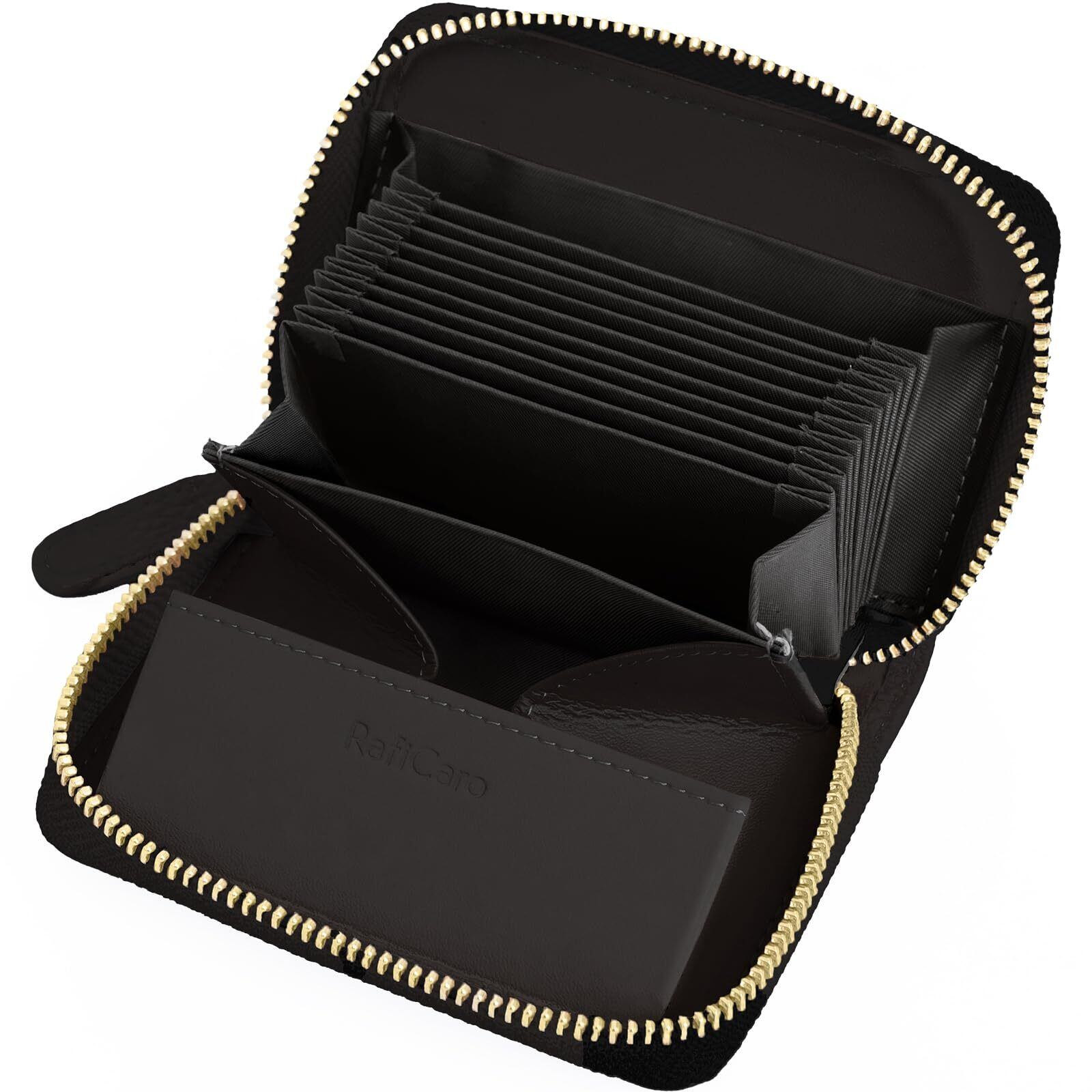 [RafiCaro] ミニ財布 お札が折れない 財布 レディース メンズ 二つ折り財布 大容量 じゃばら カードケース ボックス型 小銭入れ YKKファスナー 牛革 小さい財布 ブラック