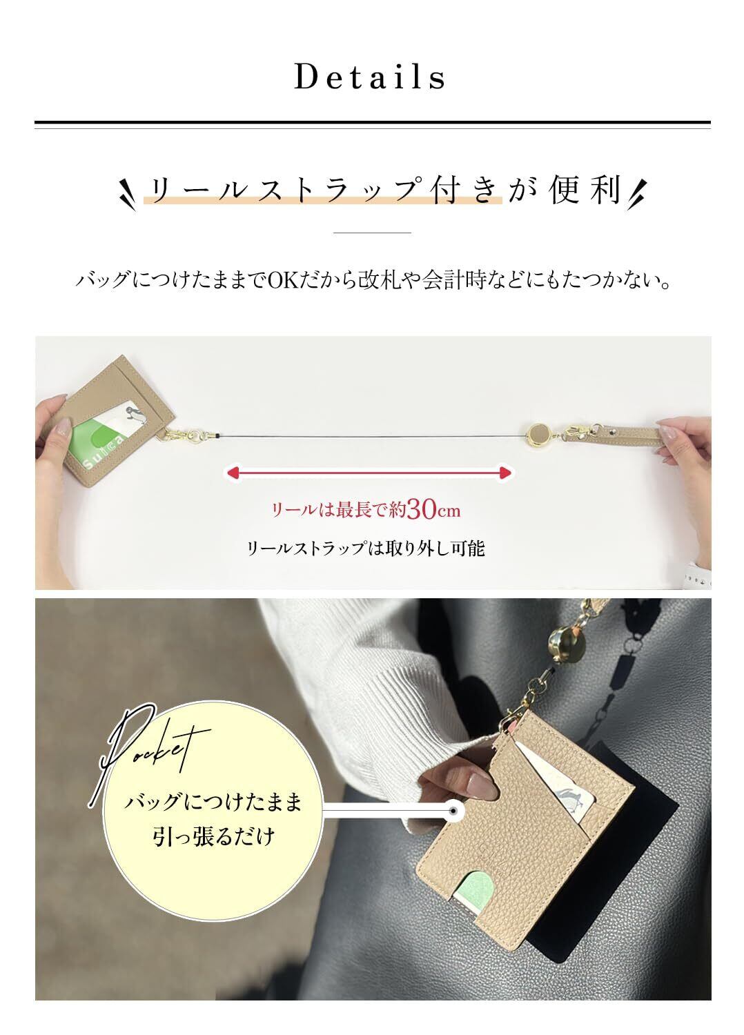 【 パスケースだけじゃないマルチな実力 】 パスケース使いはもちろんのこと、薄型カードケース としての機能も装備。 ICカード、お札などをまとめて持ち運び可能! キャッシュレス化が進む現在、 これ一つでランチやコンビニやスーパーへのちょっとしたお出かけやお買い物もとっても便利に