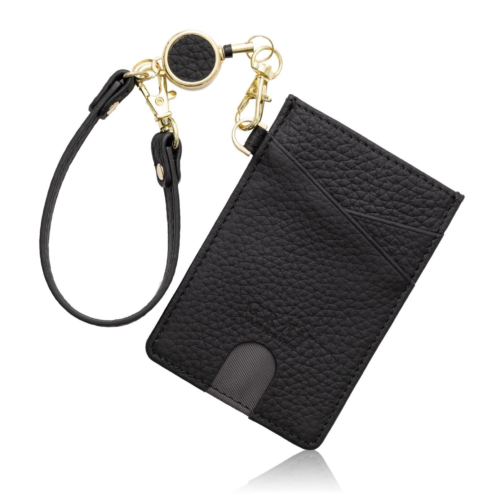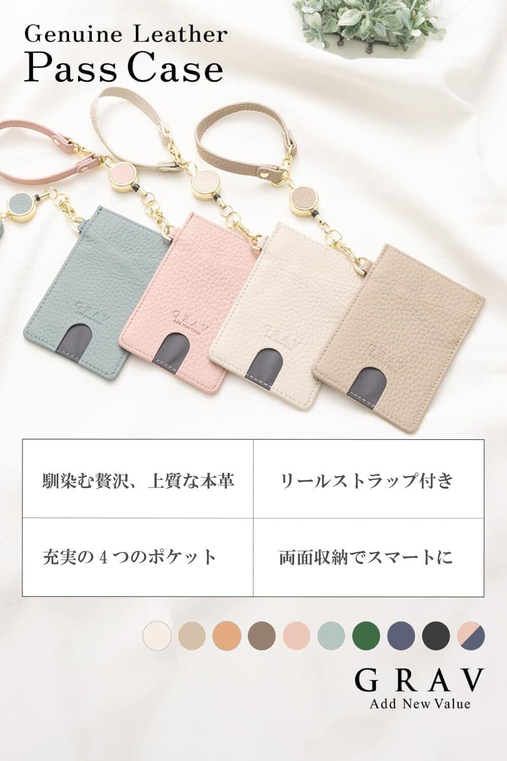 【新着商品】[GRAV] パスケース 定期入れ リール付き 2面パスケース 本革シボ レディース かわいい カードケース 薄型(キーチェーン ストラップ付き) (ブラック)