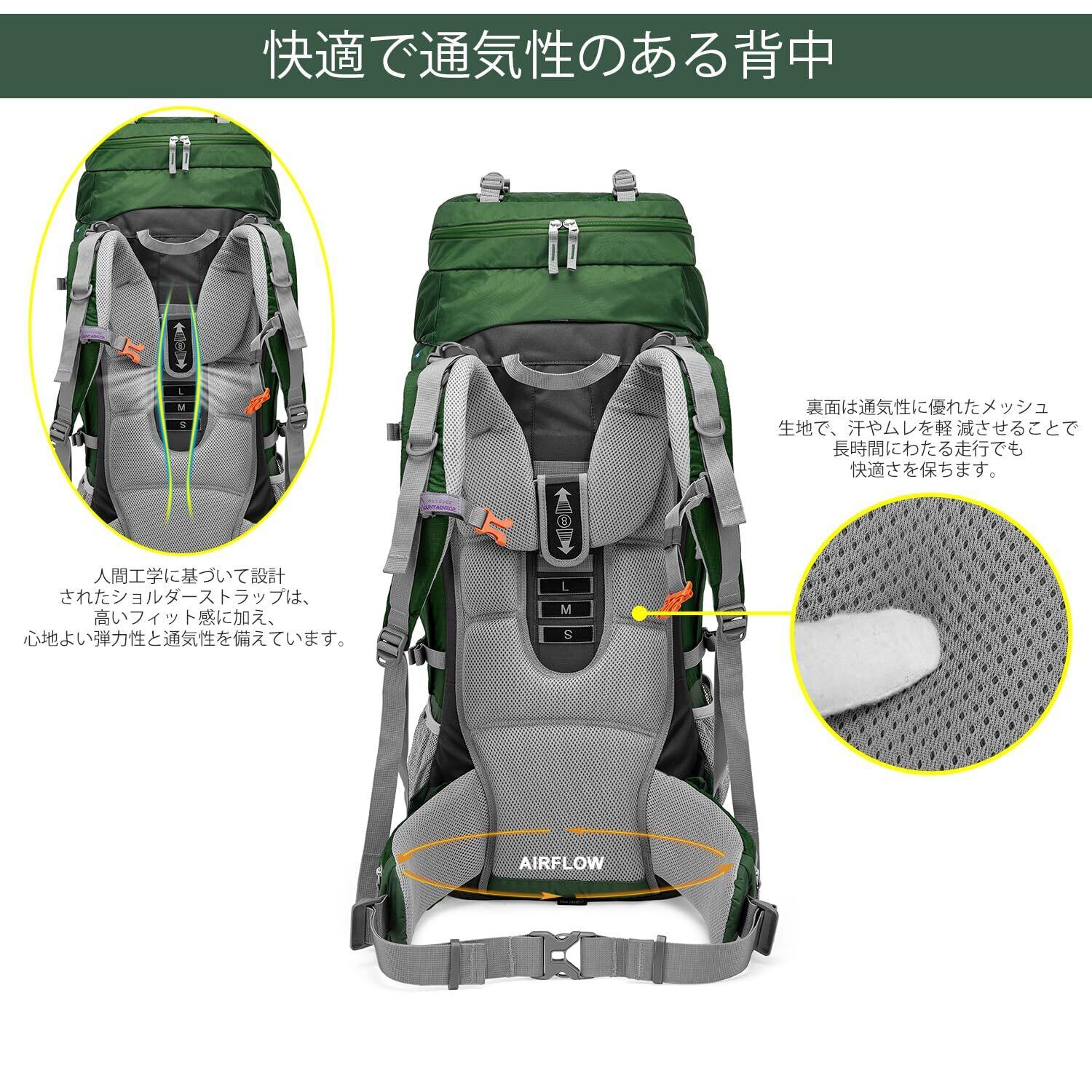 多用途: このアウトドアリュックサックには、高品質の防水ライニングとレインカバーが装備されており、雨の日にも旅行、 ハンティング、登山、キャンプにお使いいただけます。