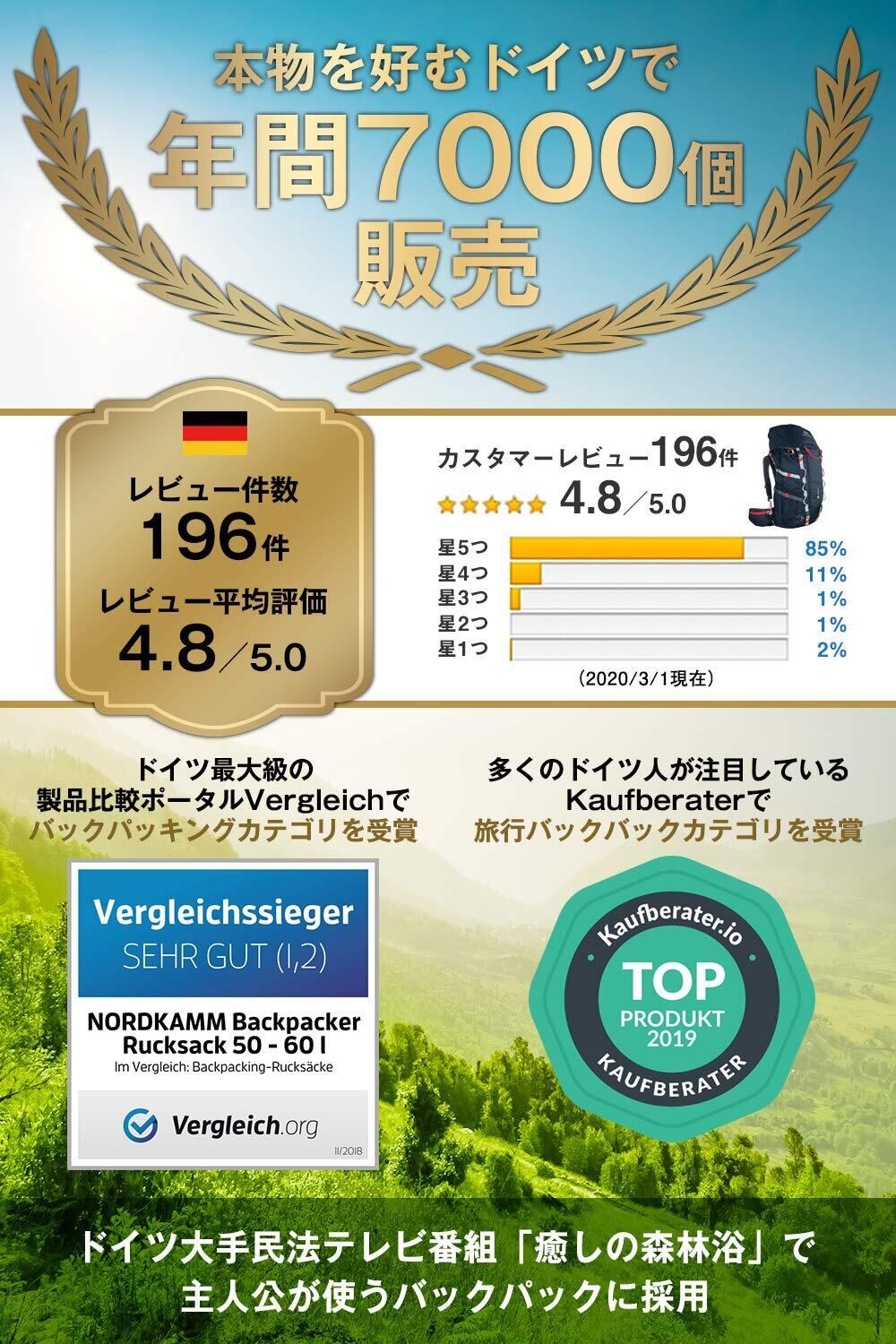 [NORDKAMM] バックパック 50L + 10L 大容量 軽量1.7kg 防水 レインカバー ザック 長期旅行 登山 防災 アウトドア【日本語説明書付】 (日本正規版) 60リットル