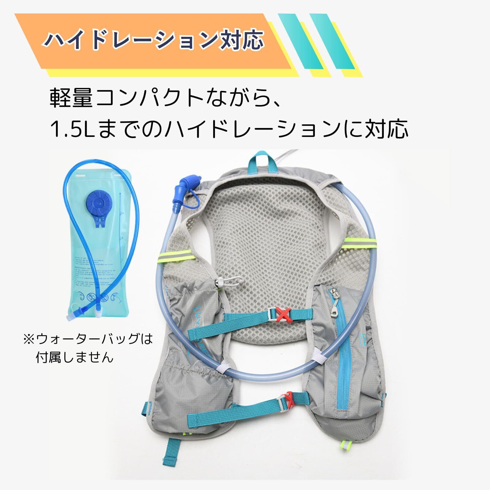 【超軽量設計】わずか140gの超軽量設計ながら、1.5Lのハイドレーションを収納可能。ランニングやトレイルランニング時の負担を最小限に抑えます。※ウォーターバッグは付属しません。