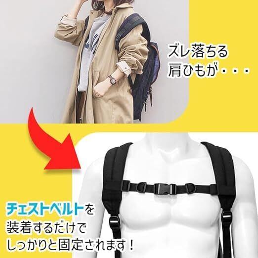 チェストストラップ リュックずれ落ち防止ストラップ ショルダーずり落ち防止バンド バックル式 調整可能 バックパック/リュックベルト 肩紐固定大人 子供 適用 ブラック
