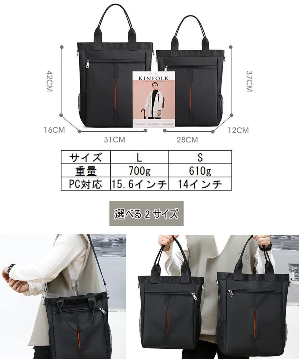 [zhongningyifeng] トートバッグ メンズ ショルダーバッグ 大容量 a4 撥水 ビジネス 仕事 縦型カバン