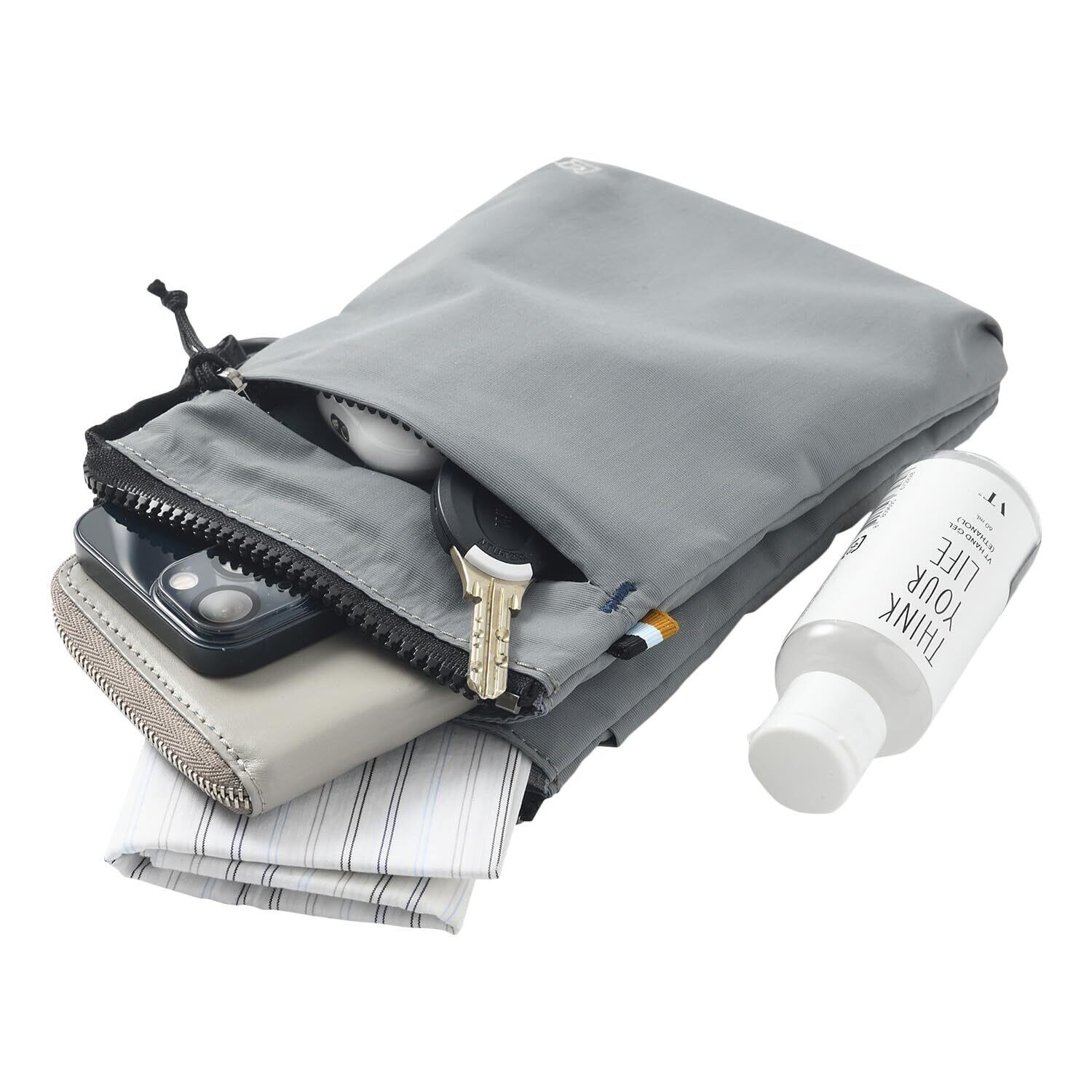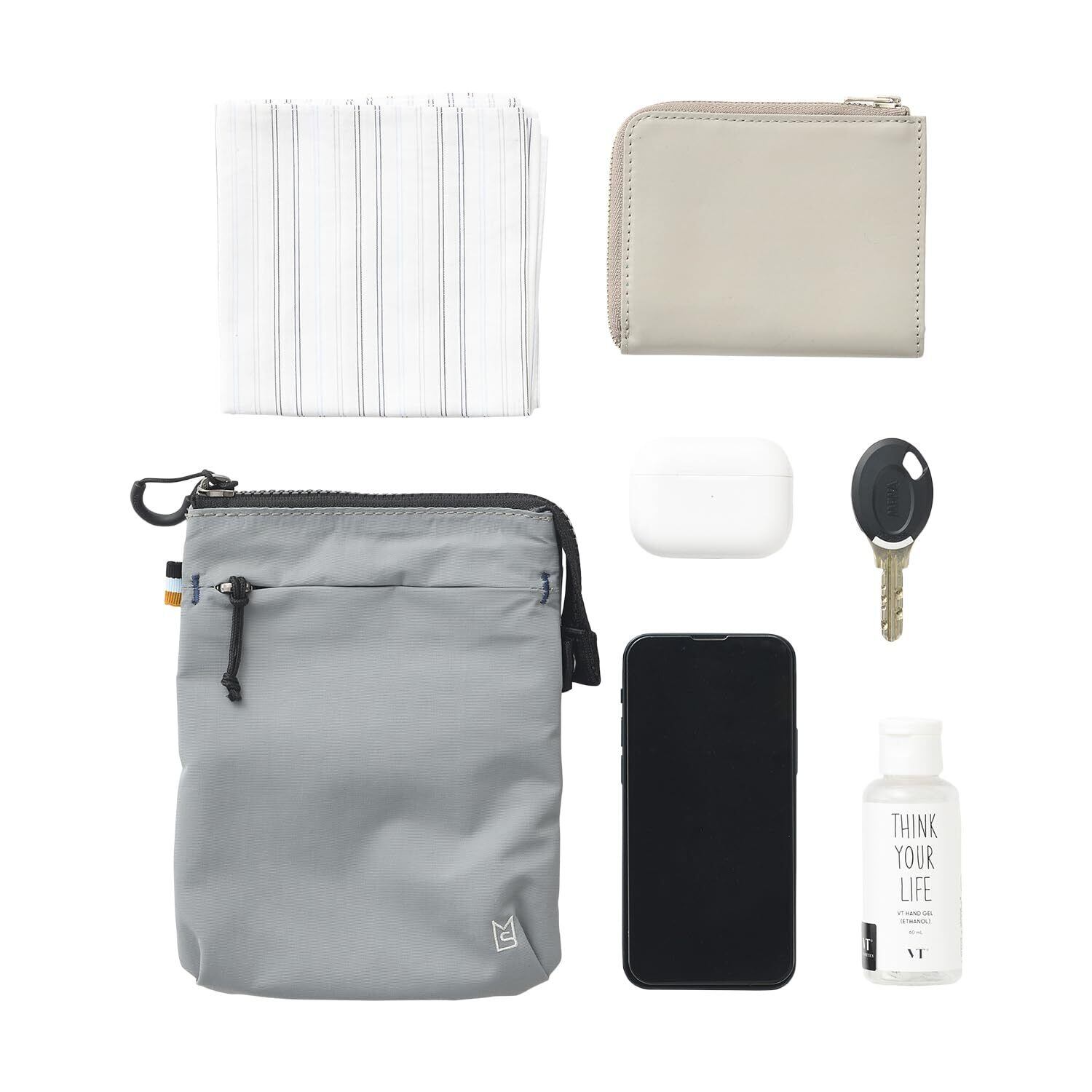 収納力・軽さ・耐水性に優れたミニマルデザインの小型サコッシュ。外装にはすぐ取り出したいものの収納に便利なフロントポケットと背面ポケットを搭載。内装のファスナーポケットの中は大きく3部屋に分かれており、真ん中はカードの収納に合わせて他のポケットより浅めの設定になっています。