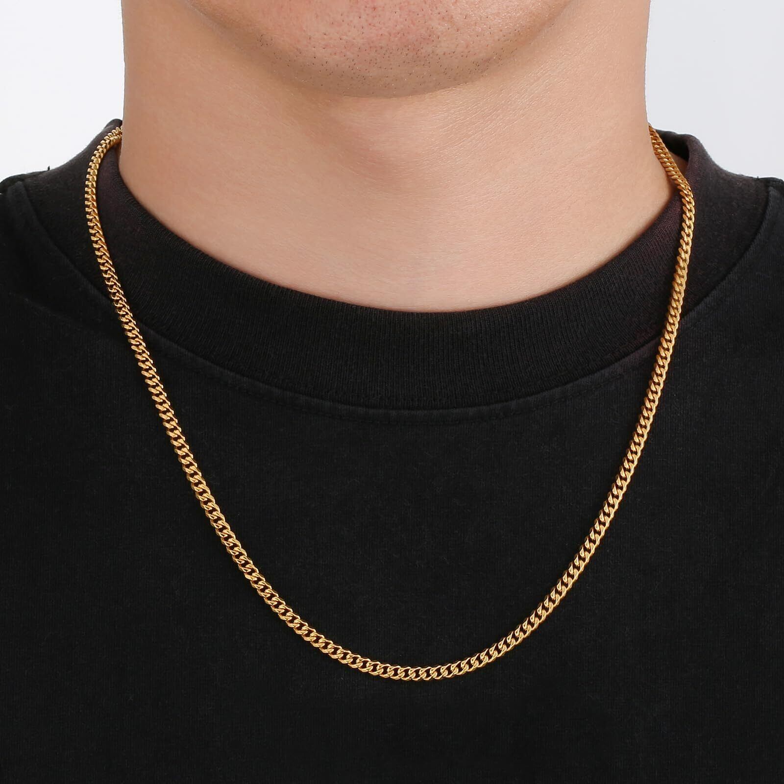 【在庫セール】KRKC&CO チェーンネックレス 6面カット メンズ 喜平ネックレス 3/5mm サージカルステンレス キューバンチェーン S925シルバー/K24金メッキ 金属アレルギー対応 男性 チョーカー B系 ストリート 人気 ギフト