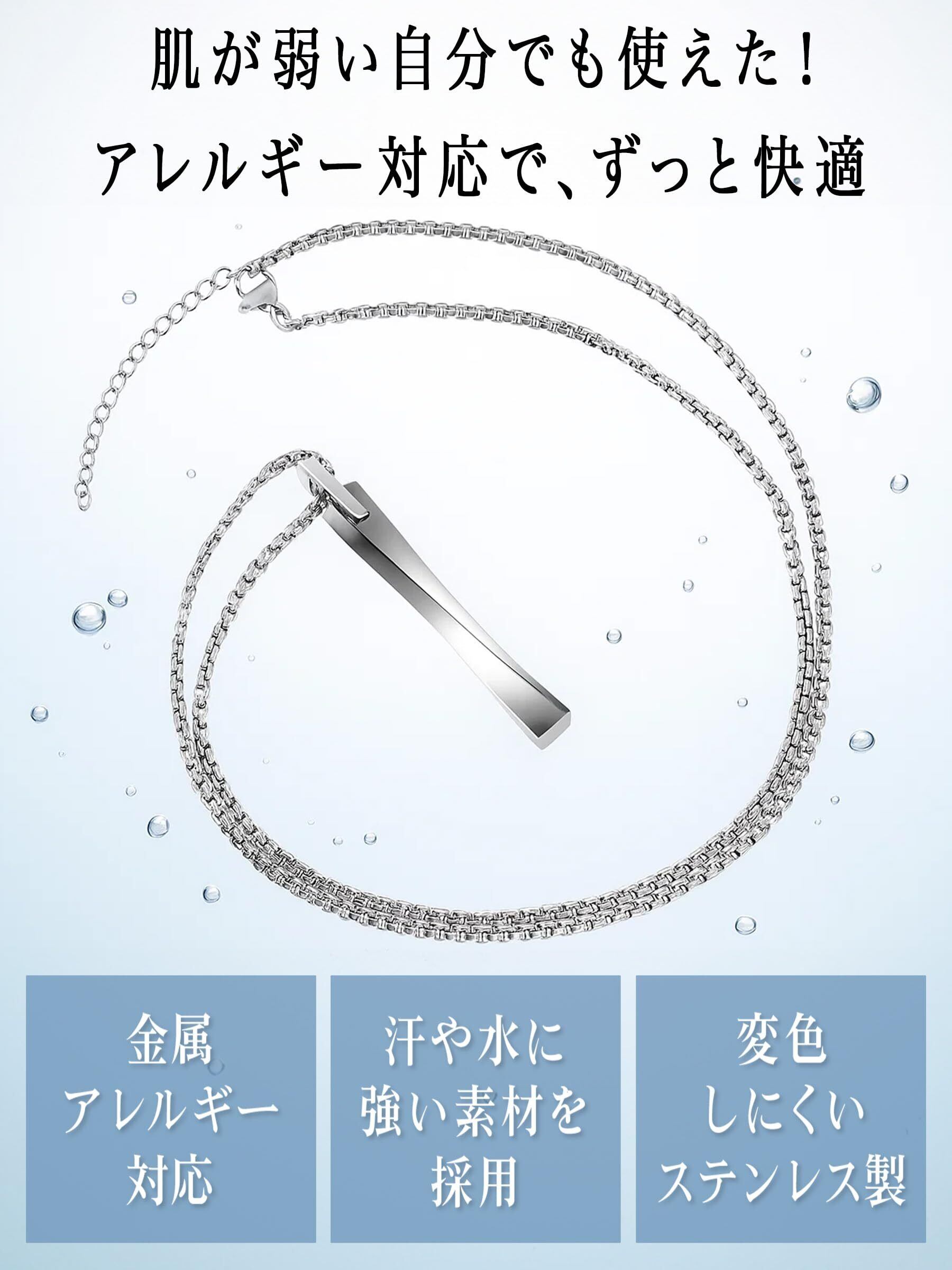 チェーンネックレス メンズ チョーカー あずきチェーン50cm あずきチェーン60cm 細めチェーン 太めチェーン ニッケルフリー 金属アレルギー 重ね付け シンプルデザイン ペアアクセ ギフト 人気 本アイテムは錆びにくく硬度も高いステンレスを採用しているため、海やジム、入浴後など湿度が高いシーンでもタフに使えます。ニッケルを含まない加工を施し、金属アレルギーの原因物質を軽減しているので、汗をかきやすい夏場でも比較的安心です(※すべての方にアレルギーが起こらないわけではありません)。チェーンは50 cmと60 cmの2種類に、+5 cmアジャスターをセット。襟の開きや重ね着に合わせてワンタッチで長さを微調整できるので、休日のTシャツスタイルはもちろん、ビジネスシャツに忍ばせるスタイルにもフィットします。クセのない小豆チェーンとスリムペンダントは流行に左右されにくく、年齢やファッションを問わず使いやすいのが魅力。高級感あるギフトボックスとジュエリークロスが付属しているため、誕生日・記念日・クリスマスなどのプレゼントシーンでそのまま渡せる手軽さも大きなポイントです。ペアアクセサリーとして色違いや長さ違いで揃えたり、重ね付けで首元に奥行きを出したりとアレンジの幅も広く、長く愛用できる一品に仕上がっています。