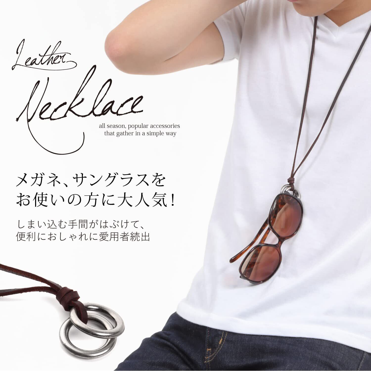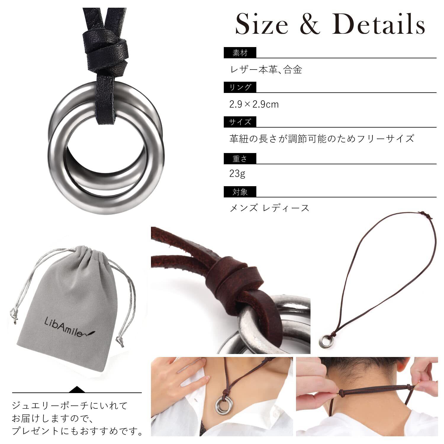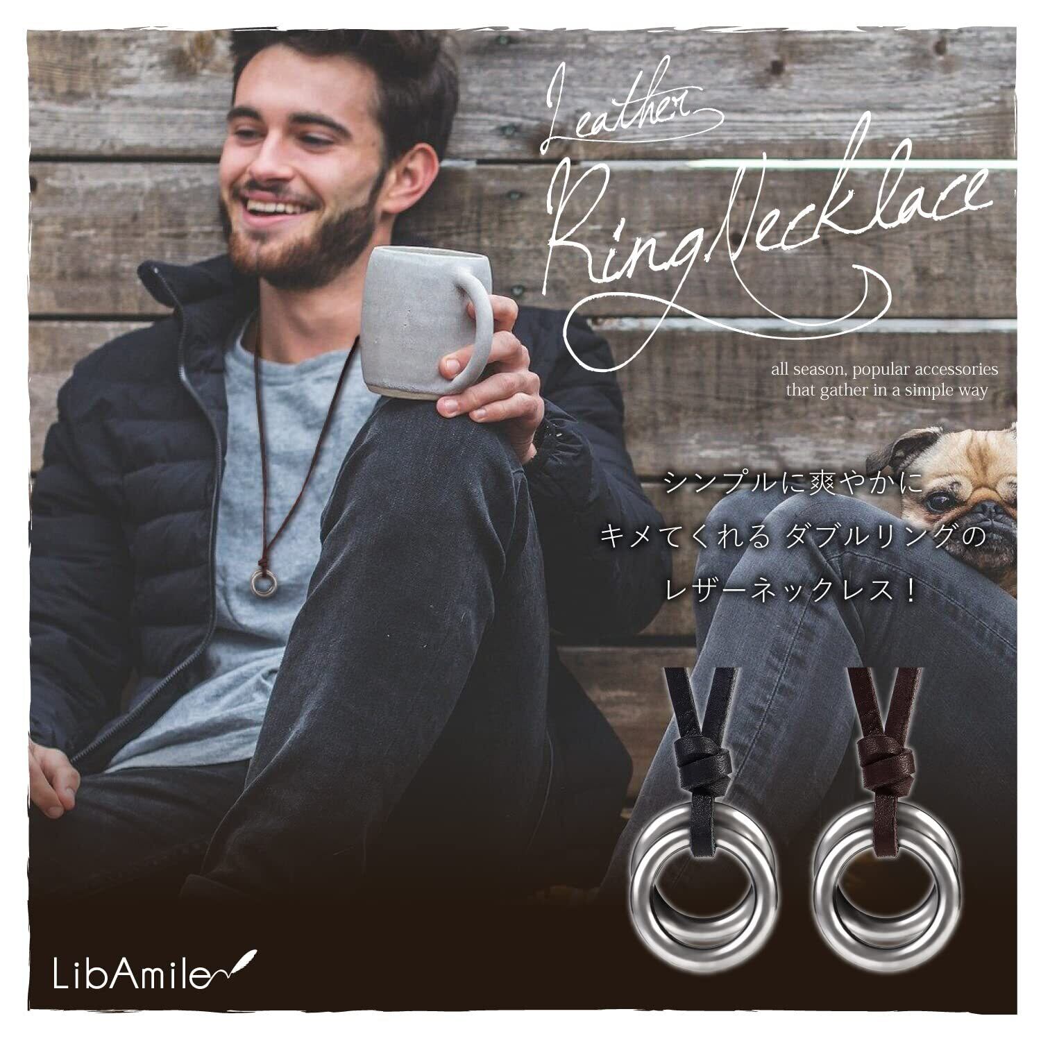 [リブアマイル] 正規品 レザー リング ネックレス 革紐 ユニセックス ロング アクセサリー ジュエリーポーチ付き(ブラウン)