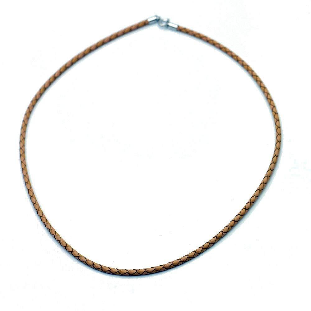 [シルバーワン] シルバー 編み込みレザーチョーカー (黒 茶 焦茶 グレー)[幅3mm 長40cm45cm50cm60cm]革ひも